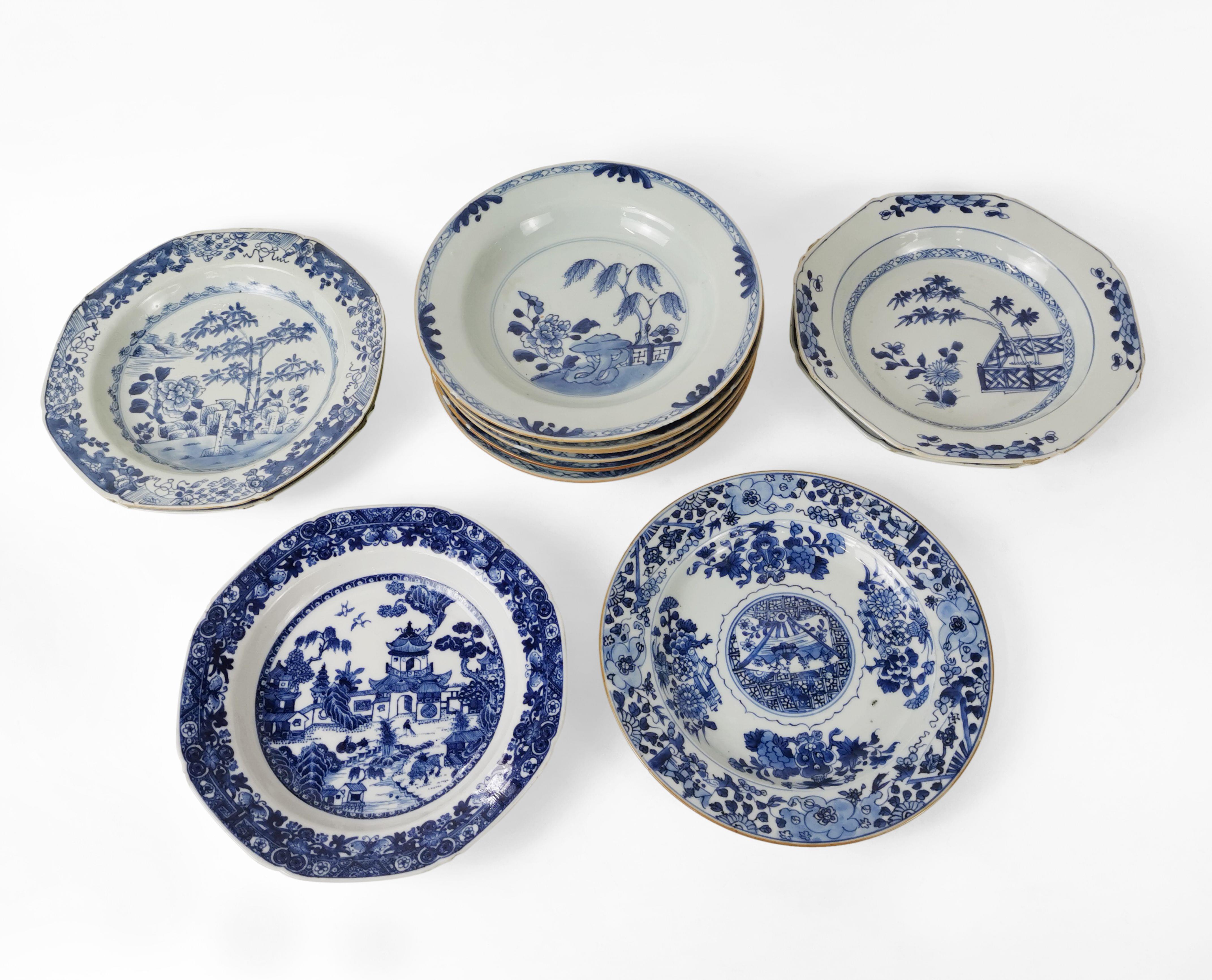4555. 12 assiettes, Chine, Compagnie des Indes, XVIIIe s