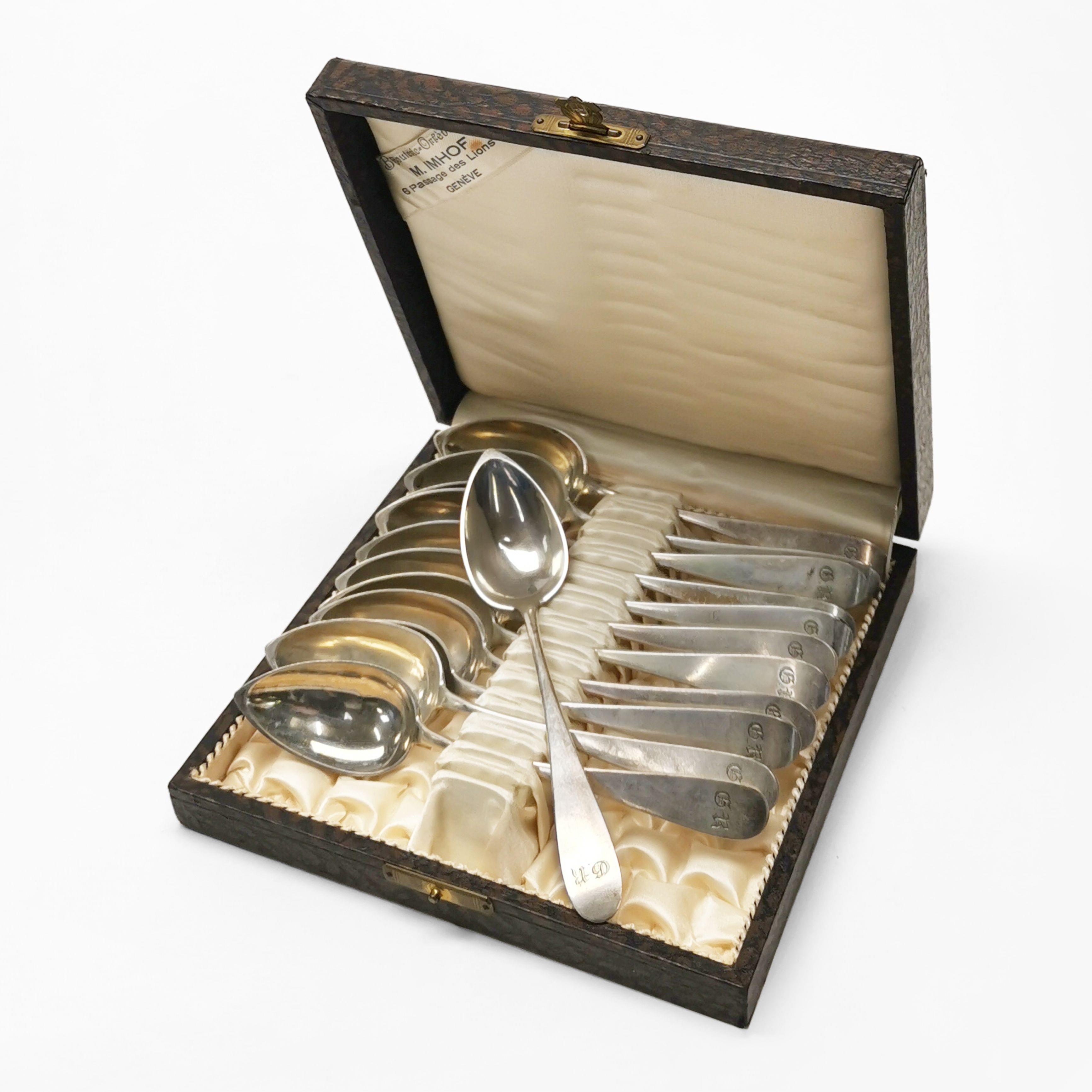 3775. Suite de 3 cuillères et 3 fourchettes gravées d'un chiffre dans...