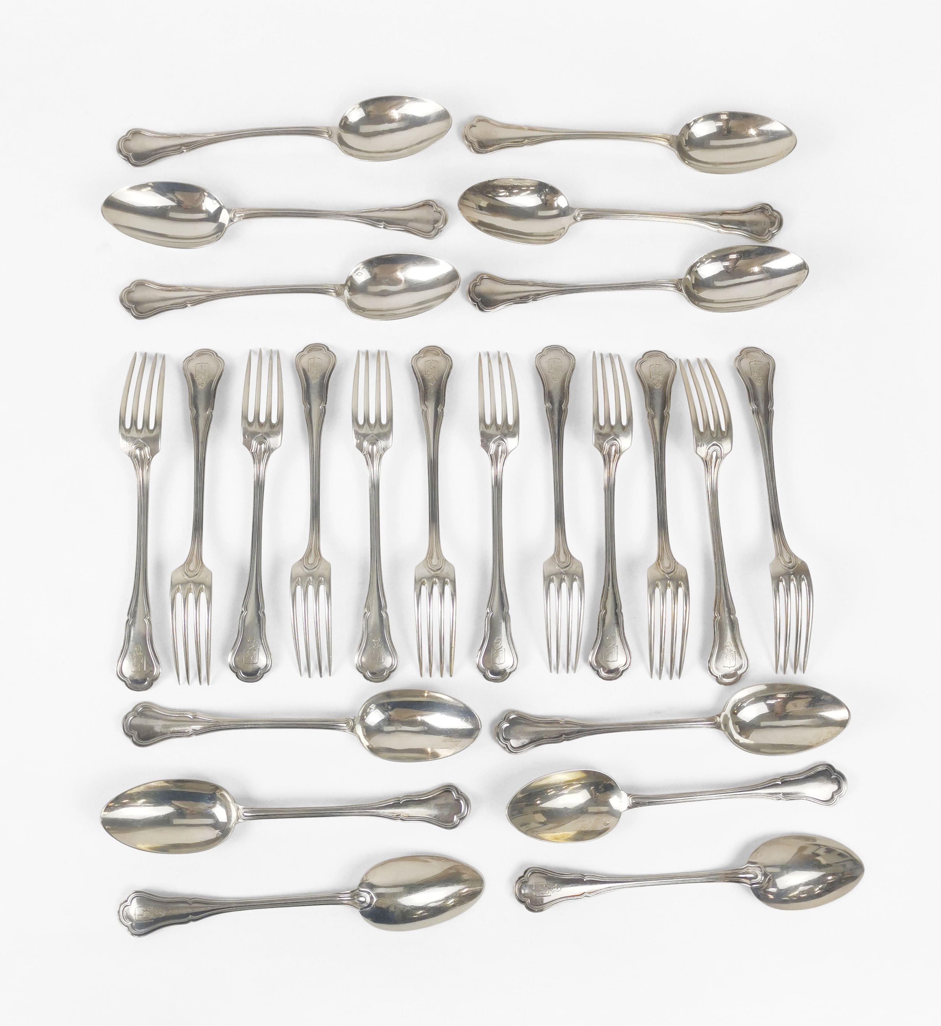 3775. Suite de 3 cuillères et 3 fourchettes gravées d'un chiffre dans...