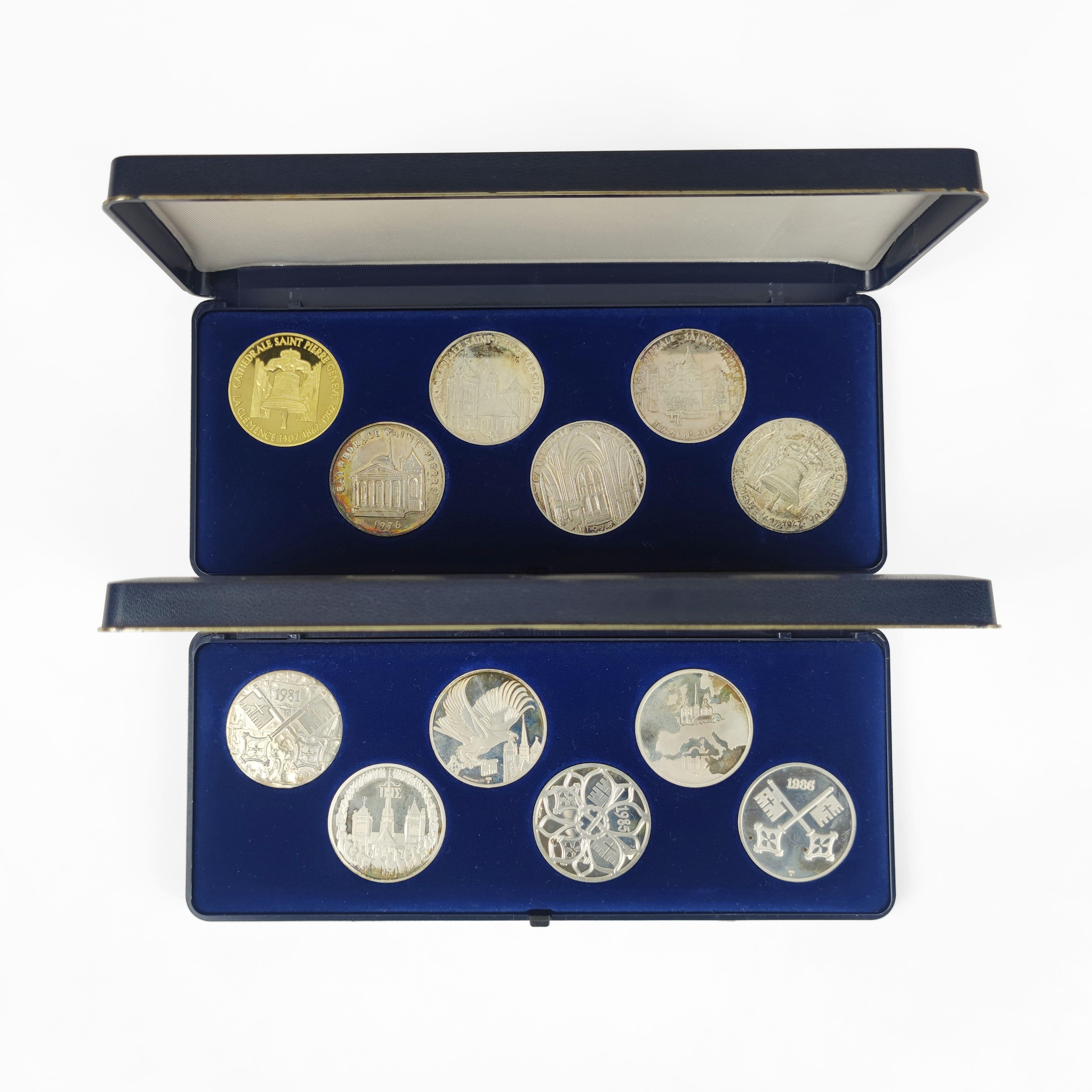 3624. Collection de trois cadres contenant 20 pièces et un timbre en o...