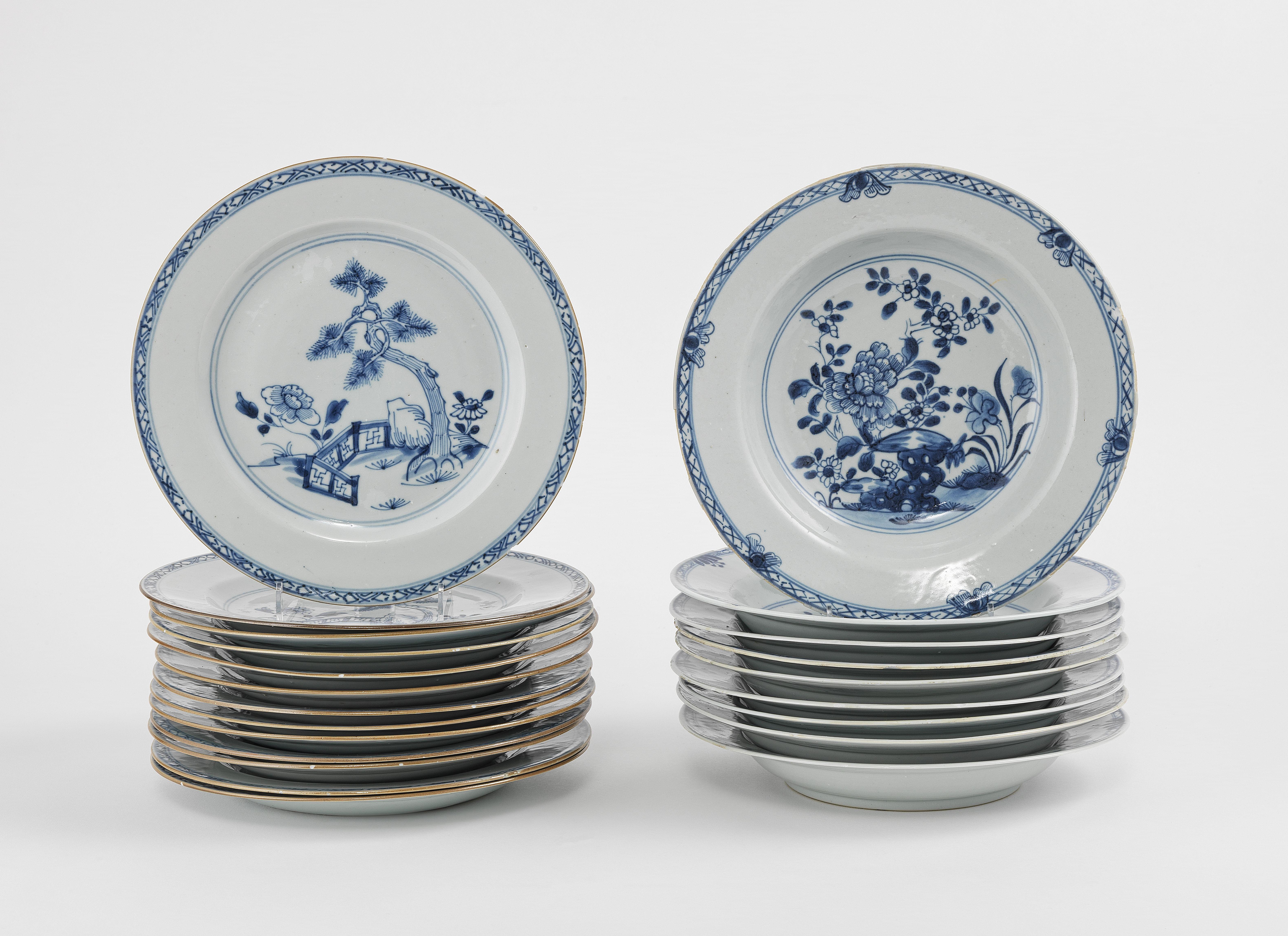148. Paire d'assiettes de présentation à bordure ajourée en treillis...