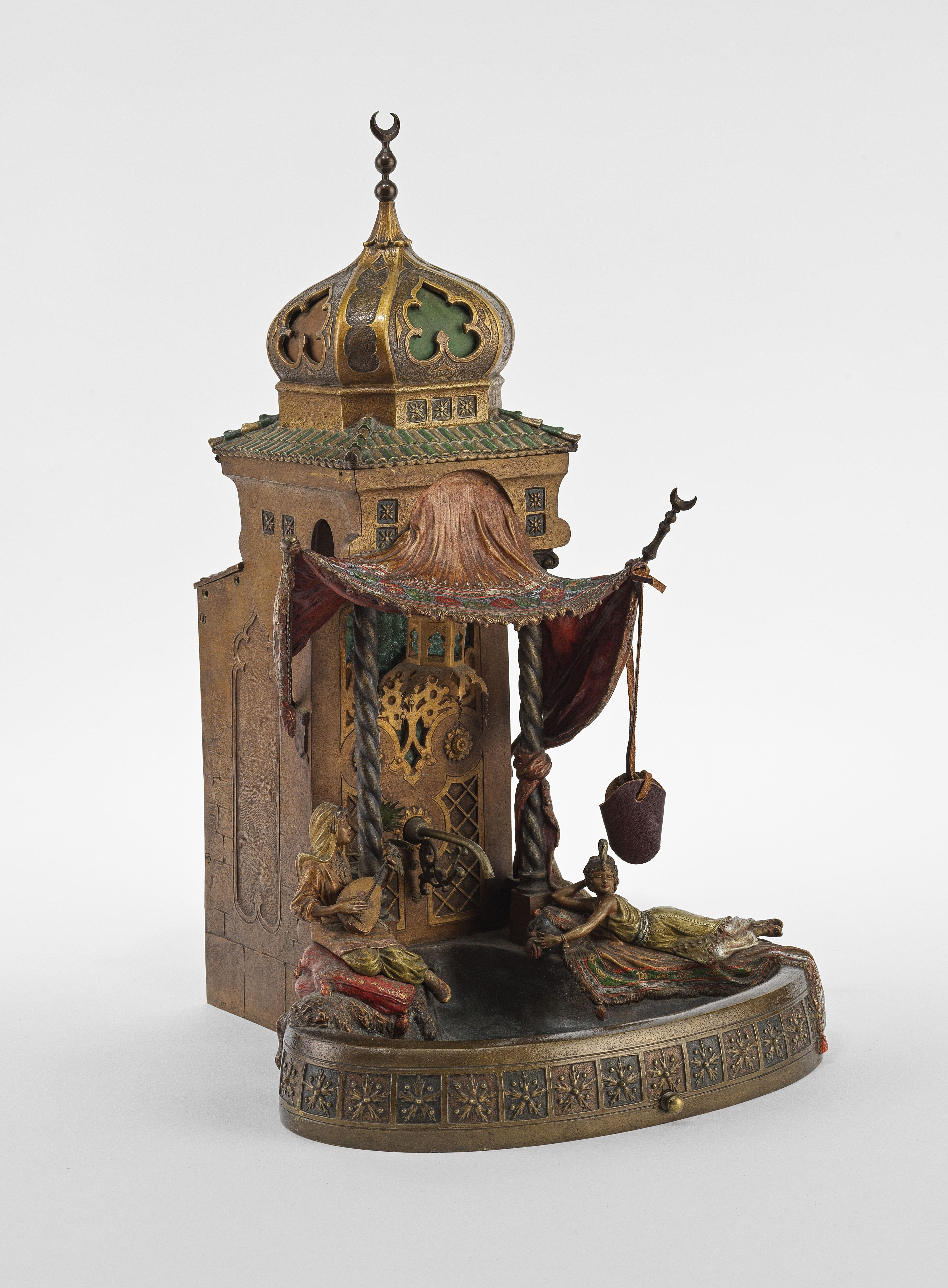 Bois satiné à décor peint de fleurs et motifs à l'antique, 66x10...