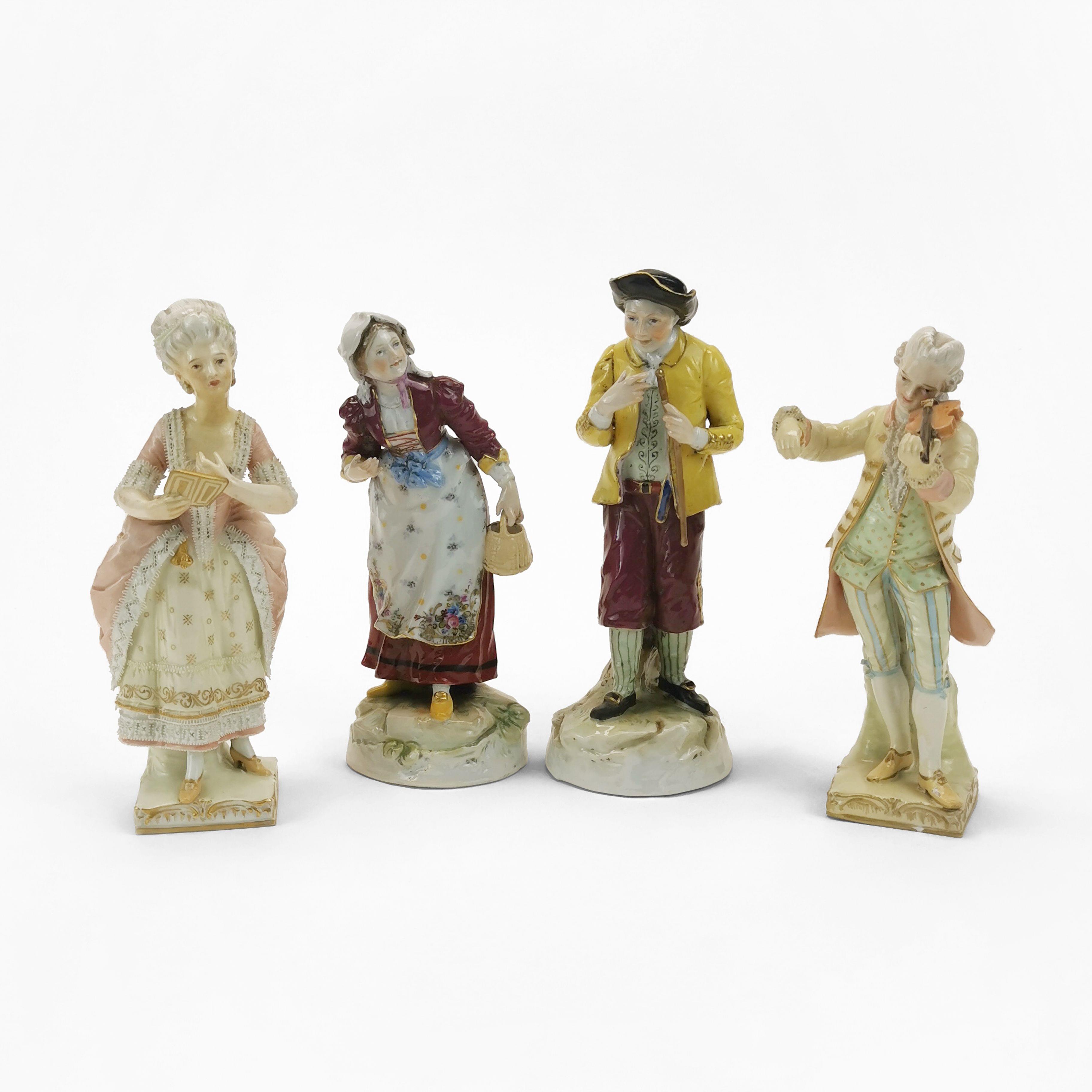 Vienne et Berlin, deux couples de figurines, porcelaine, H 17 cm