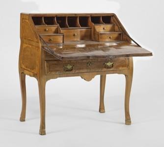 Un abattant, trois tiroirs, bois marqueté, 100x87x52 cm