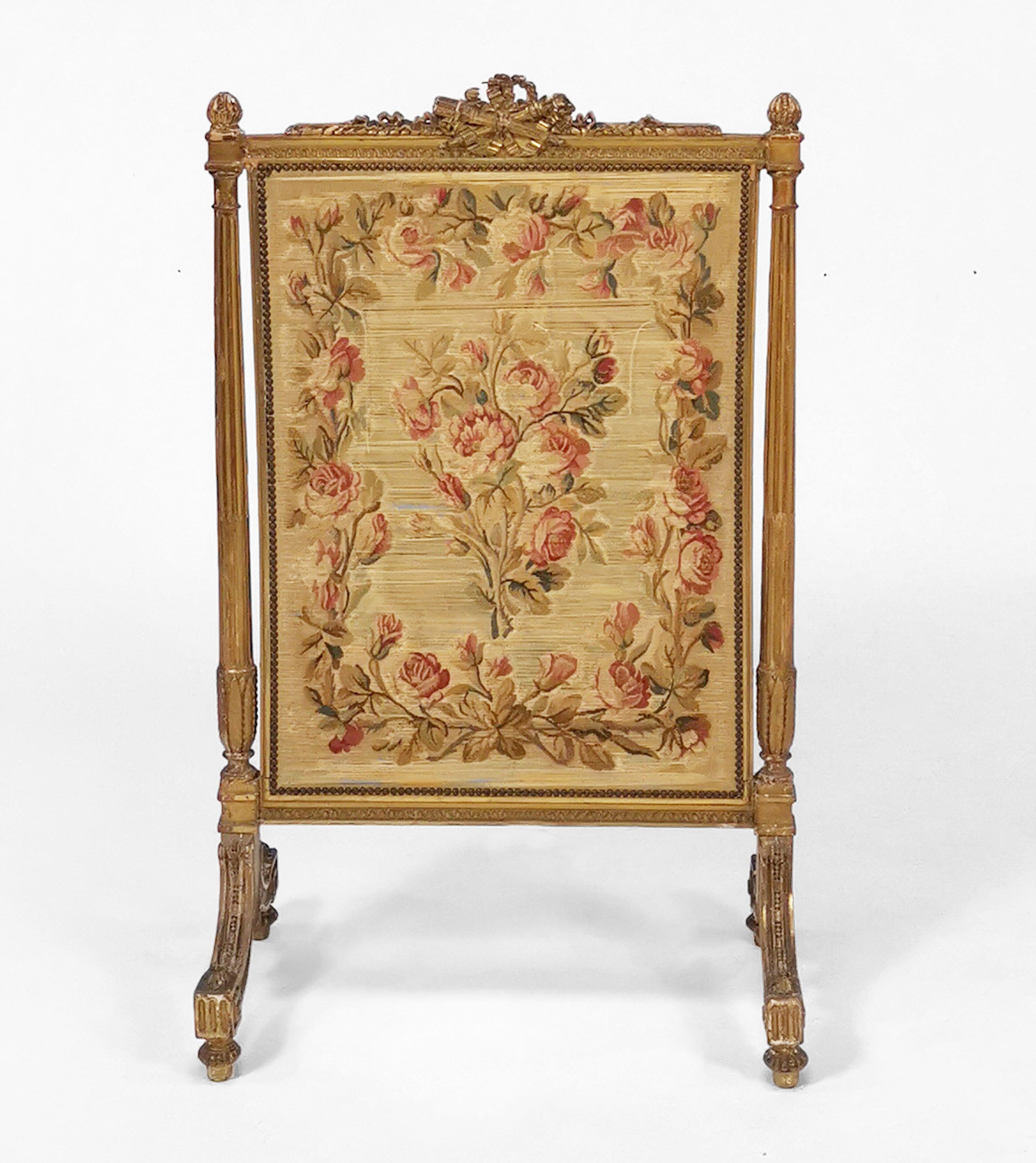 Bois doré, tapisserie aux petits points à décor de fleurs, H 100 cm