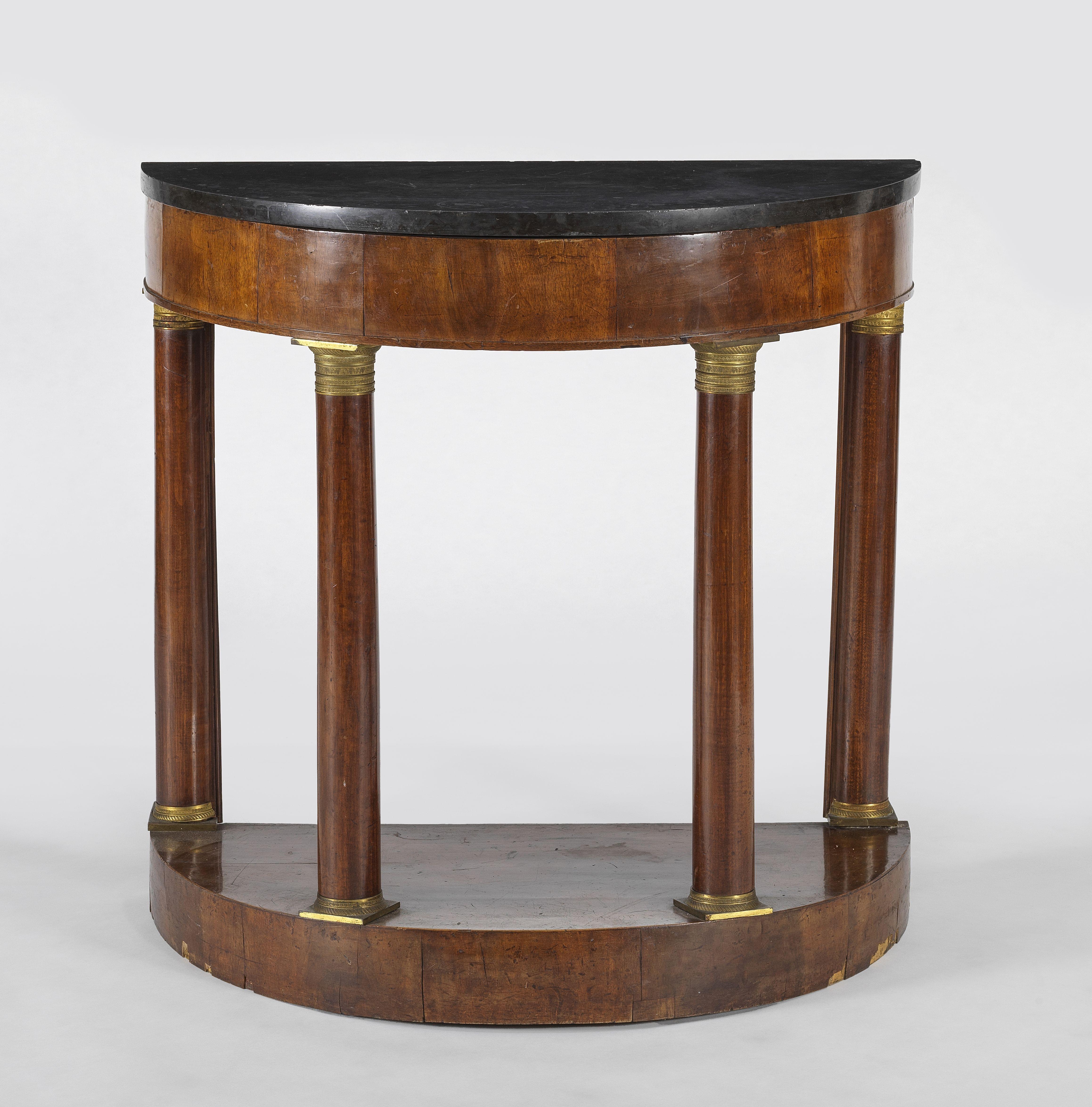 Montants en colonnes, acajou, marbre noir et bronze doré, 88x89x47 cm.Provenance: collection patricienne genevoise