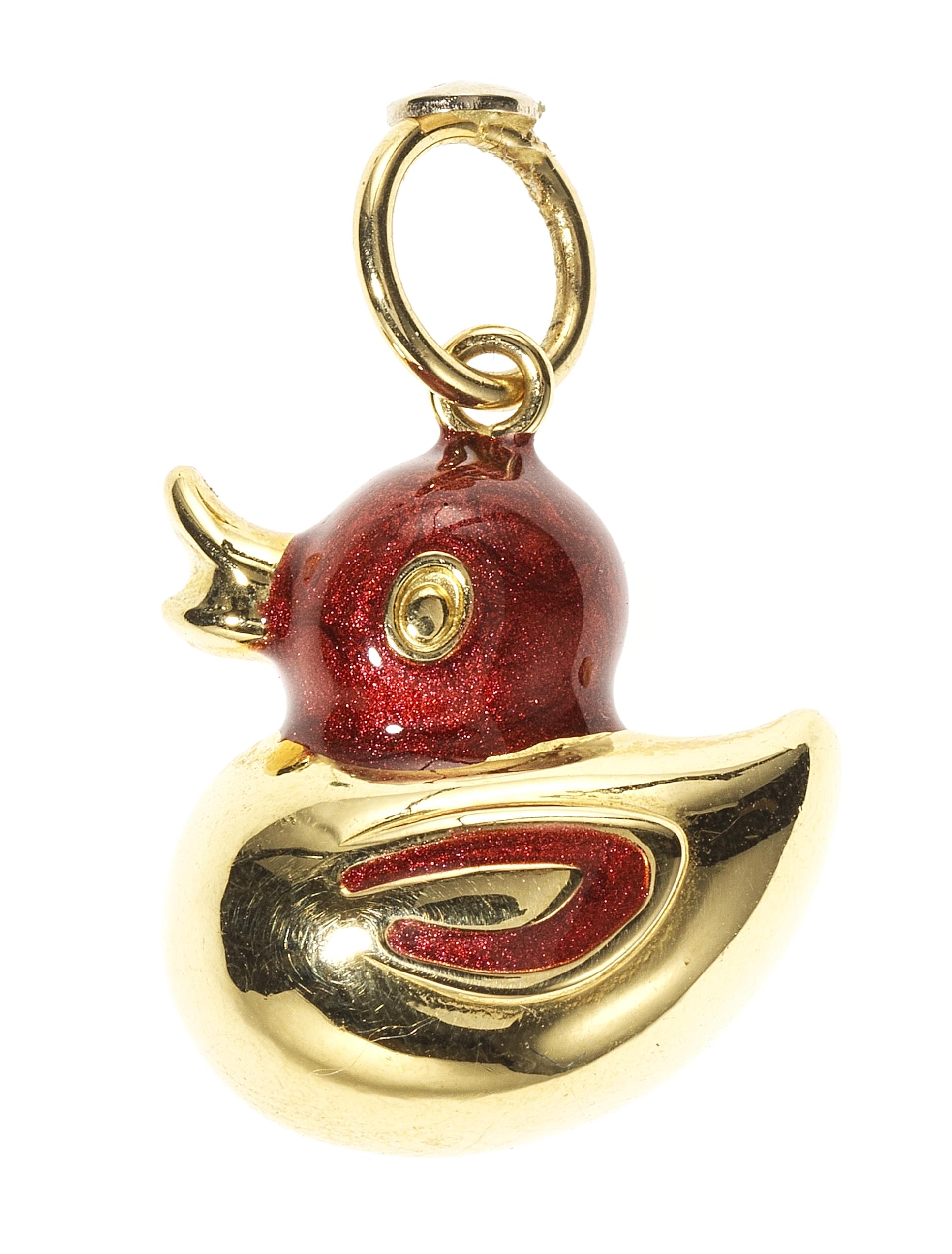 3937. Pendentif à motif de canard à la tête émaillée rouge