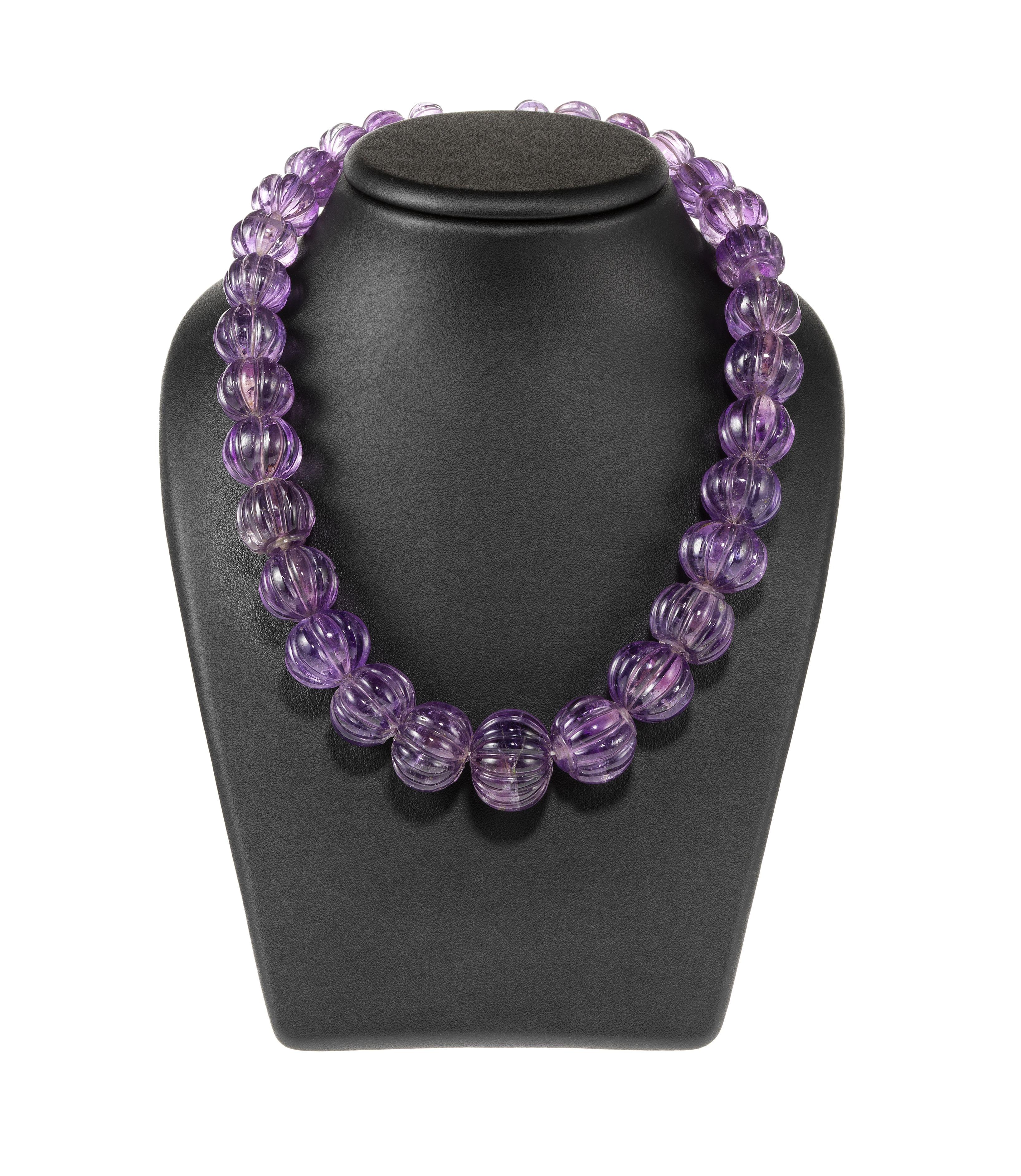 3943. Collier de perles d'améthystes sculptées en chute