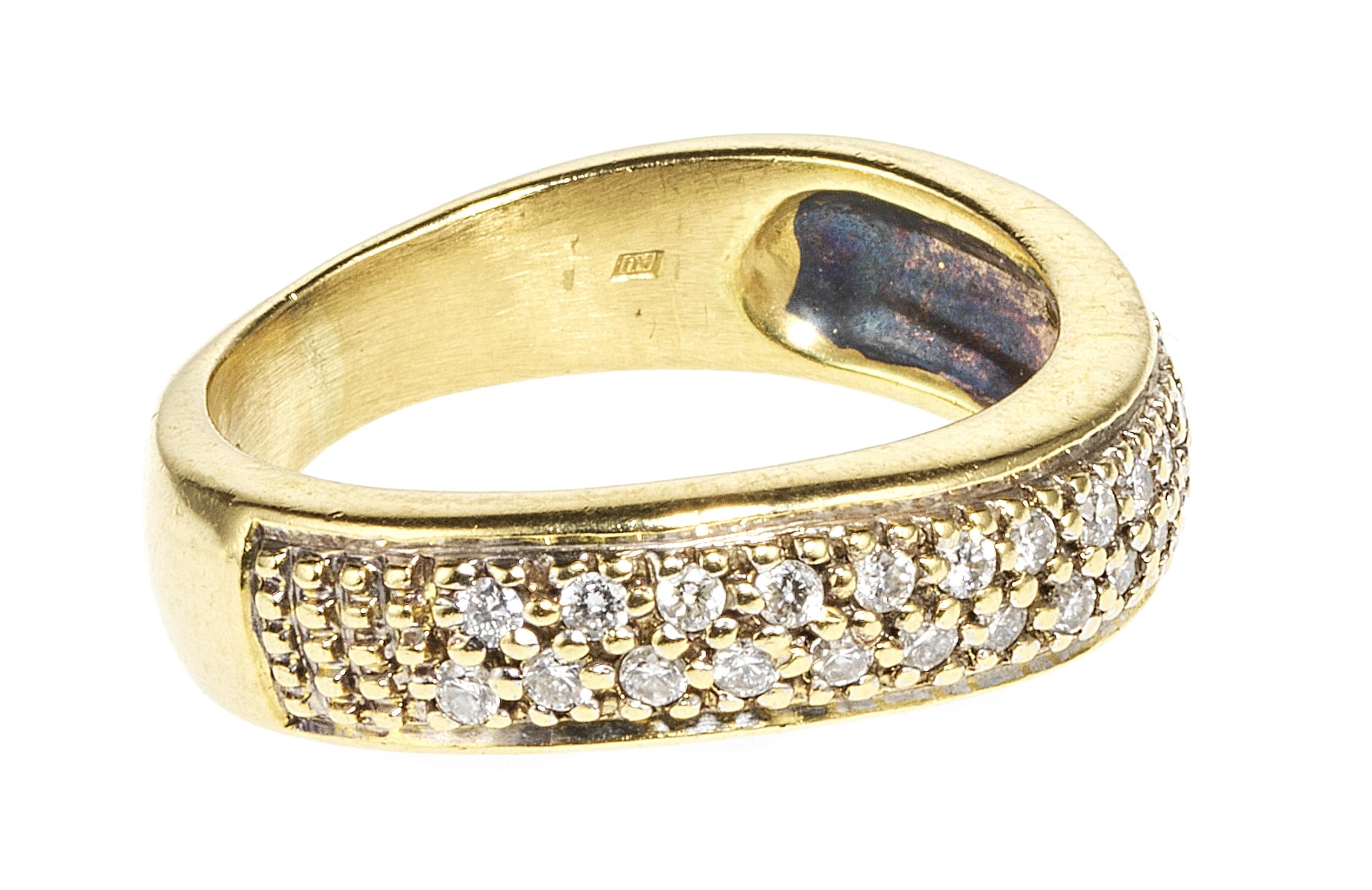 3989. Bague bandeau formant un motif de vague pavé de diamants (env. 0,3 ct)
