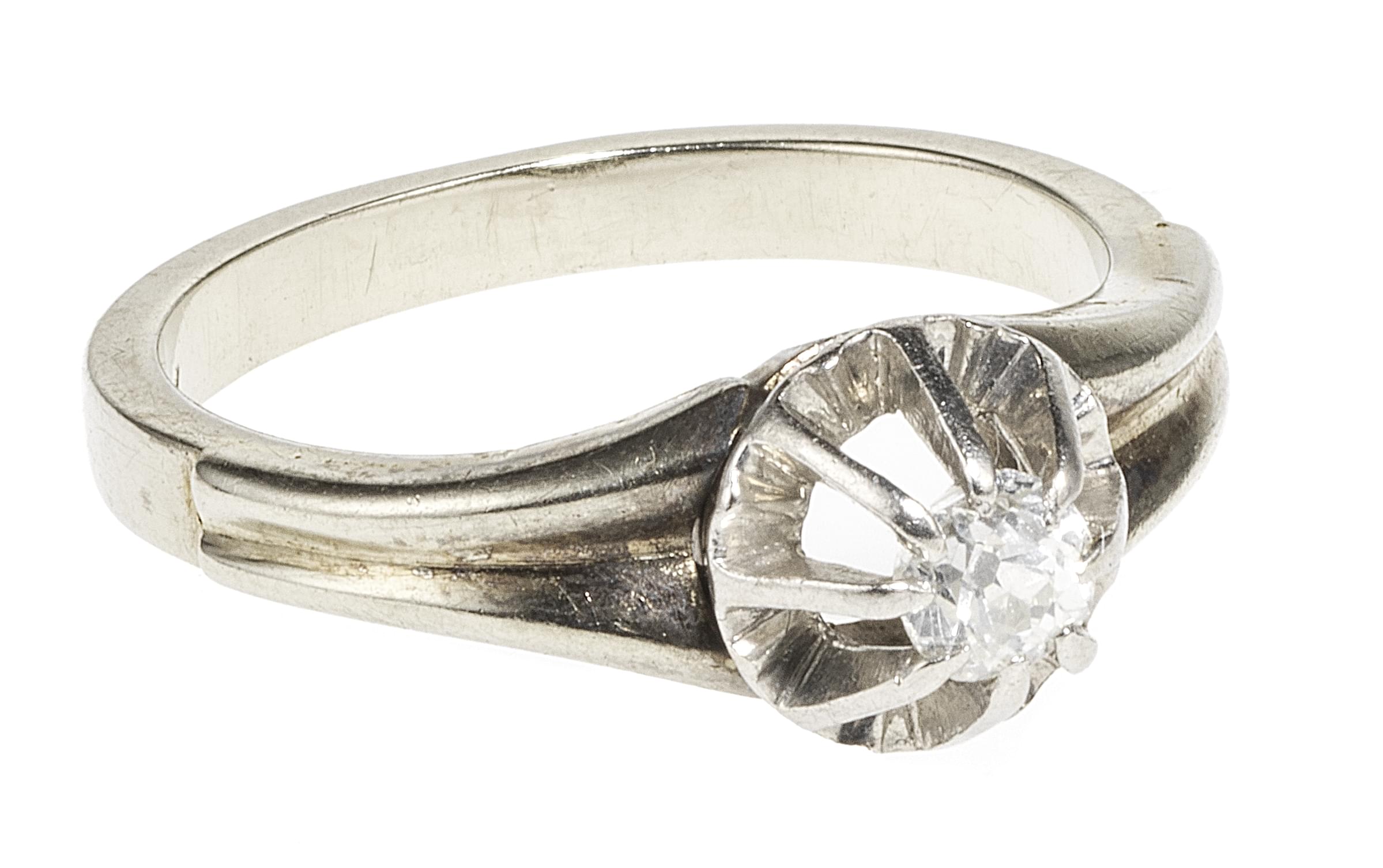 3990. Solitaire serti d'un diamant taille ancienne (env. 0,2 ct) sur châton illusion
