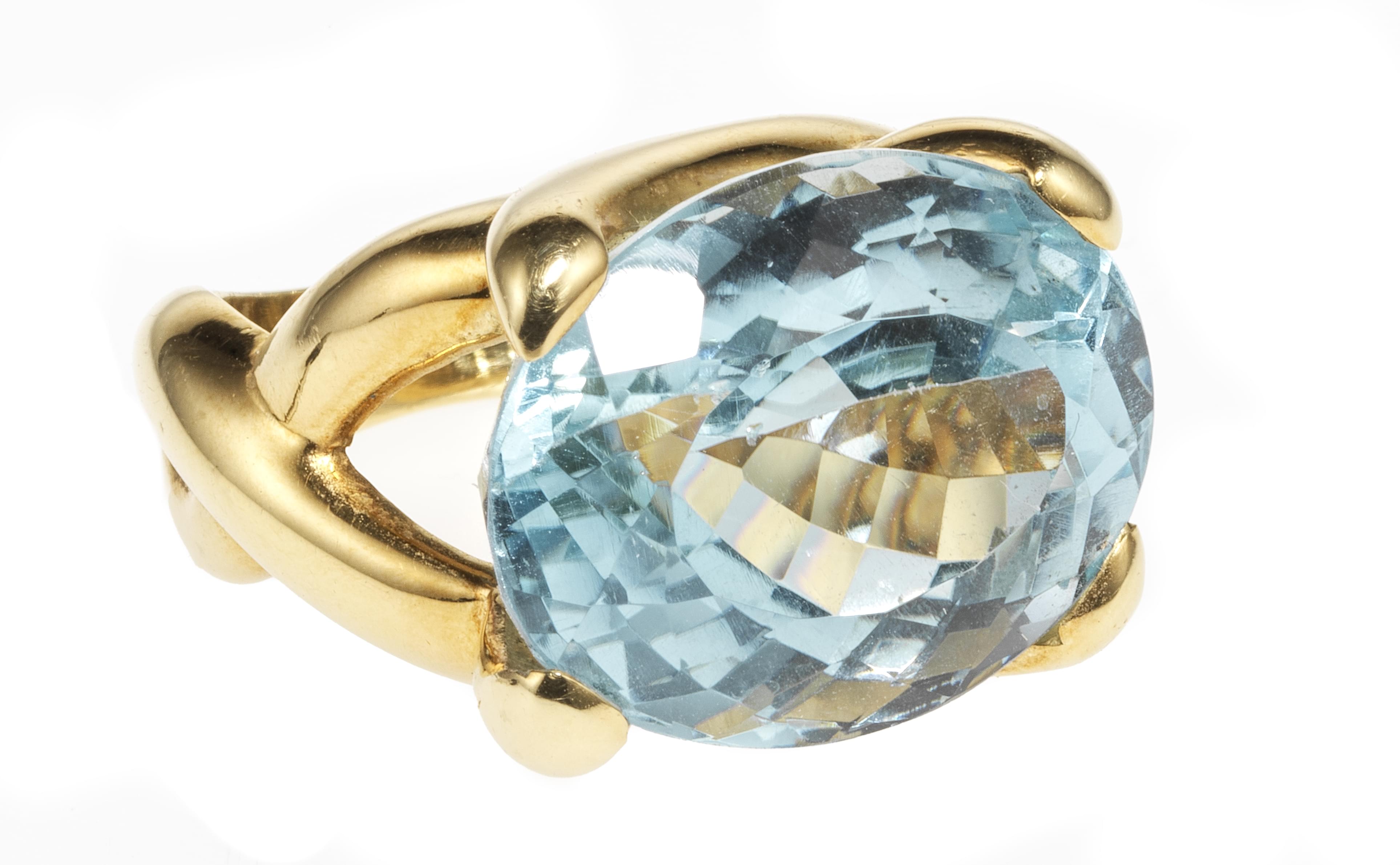 4062. Bague sertie d'une topaze bleue taille ovale (env. 26 ct)