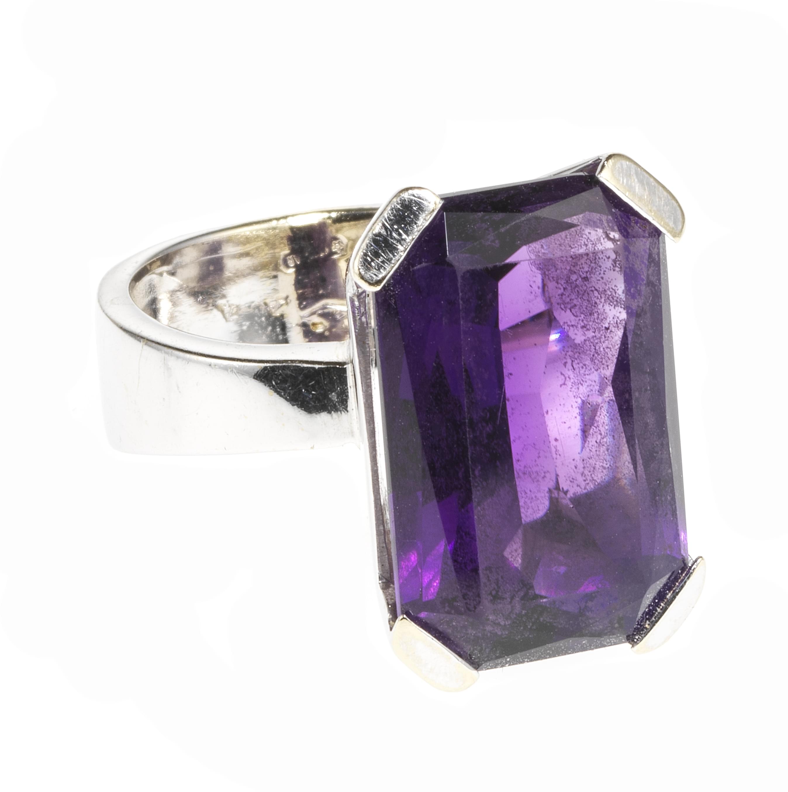 4068. Bague sertie d'une améthyste taille rectangle (env. 14 ct)