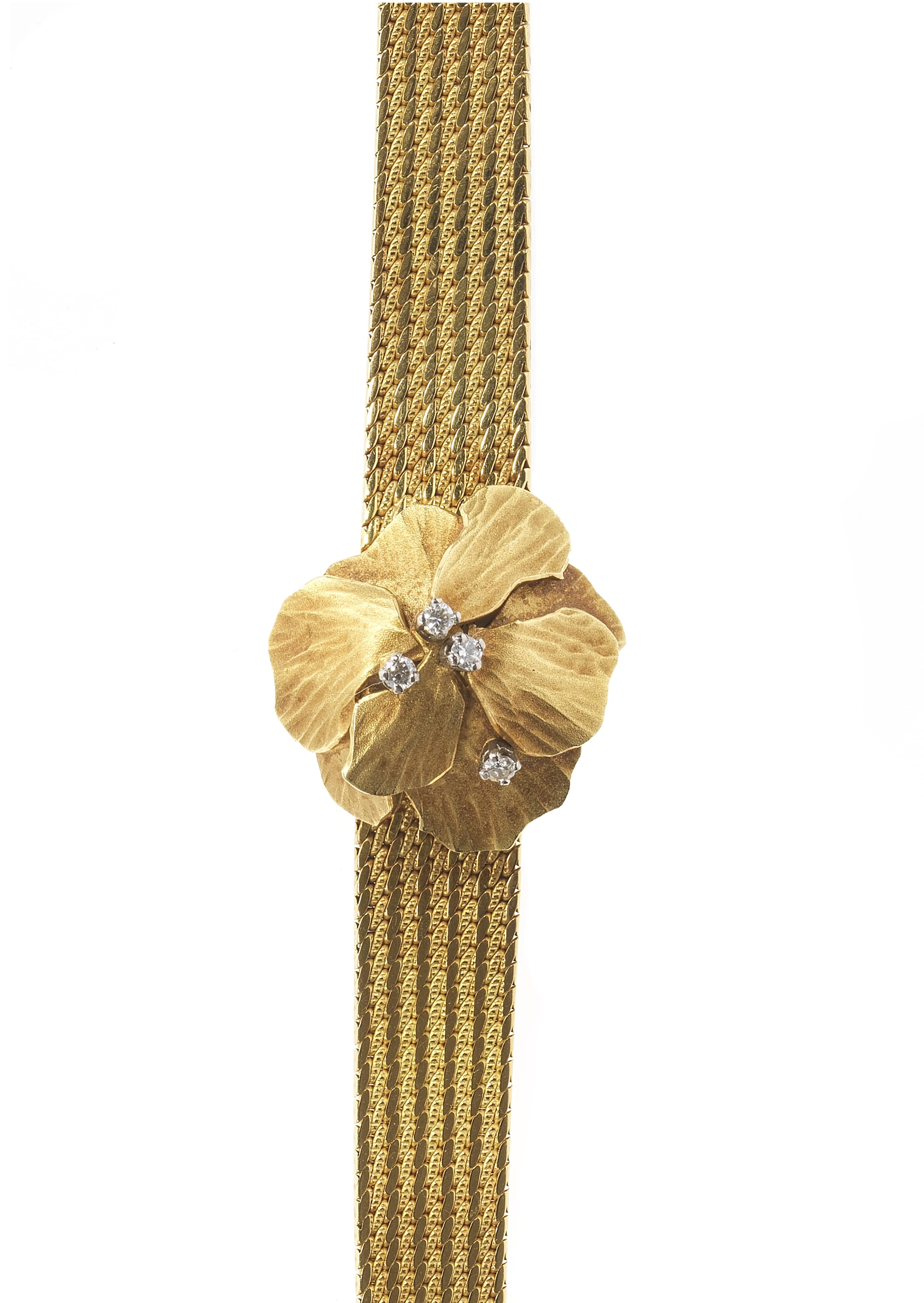 Cadran crème, aiguilles dorées, index en diamants, or 750, L env...