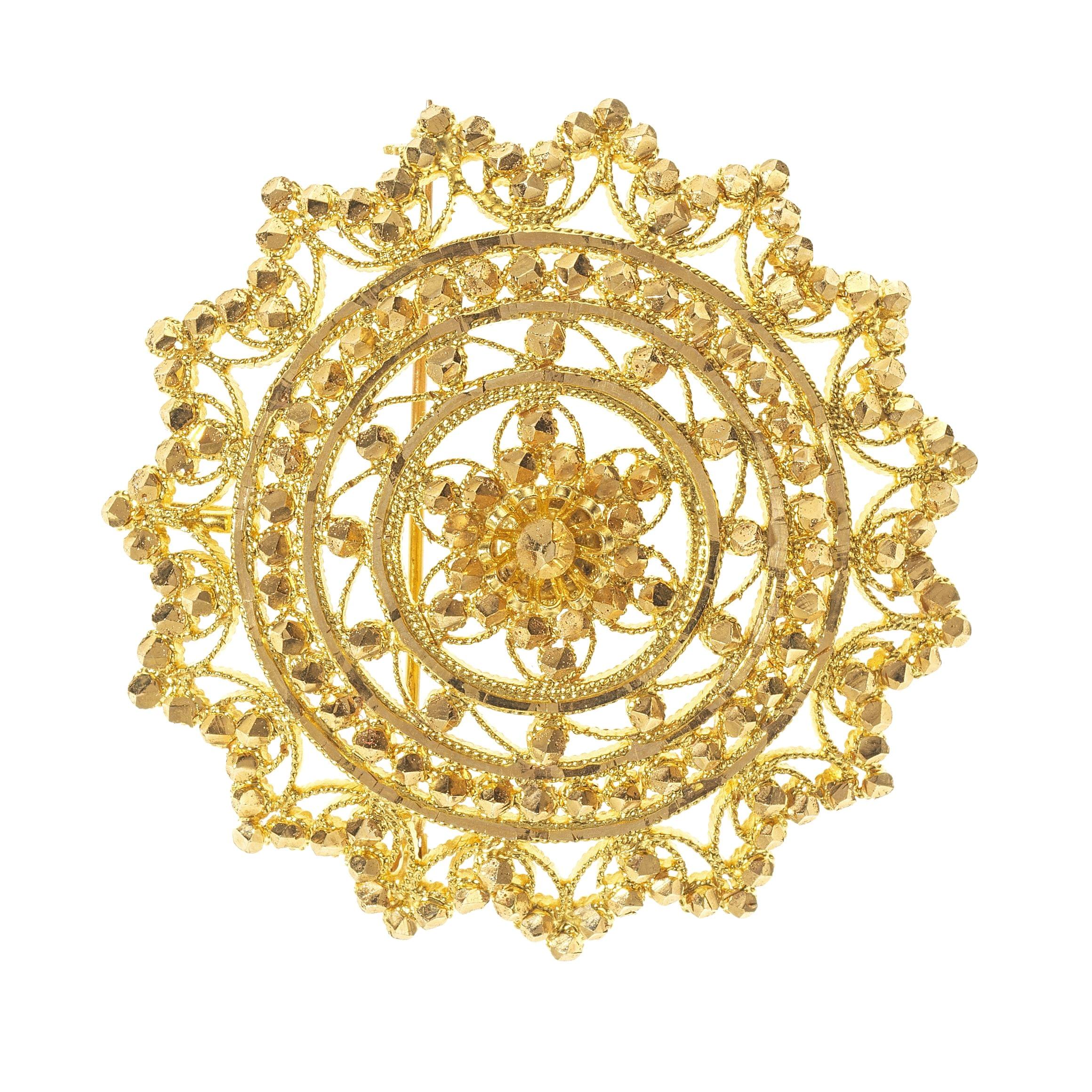 Motif en or 82 à 85%, tige en or 68% selon le CMP, D 3,5 et 5,5 cm, 35 g