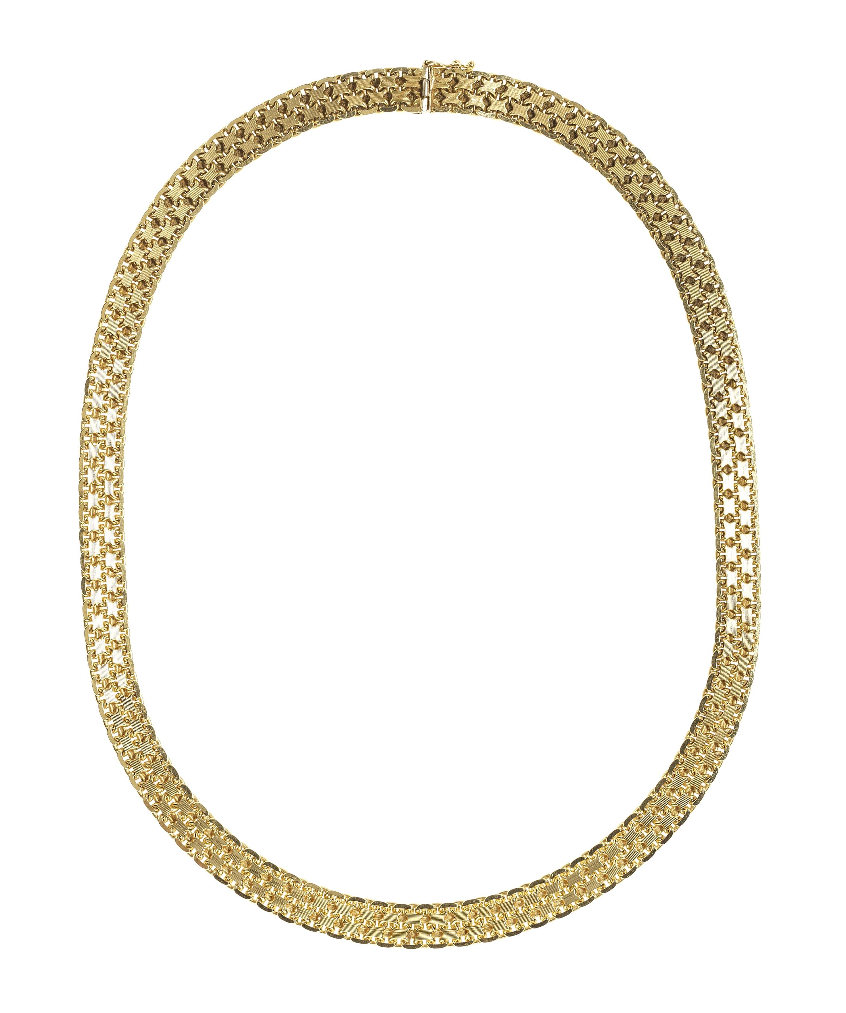 323. Collier tour de cou design centré de motifs ronds ajourés sertis...