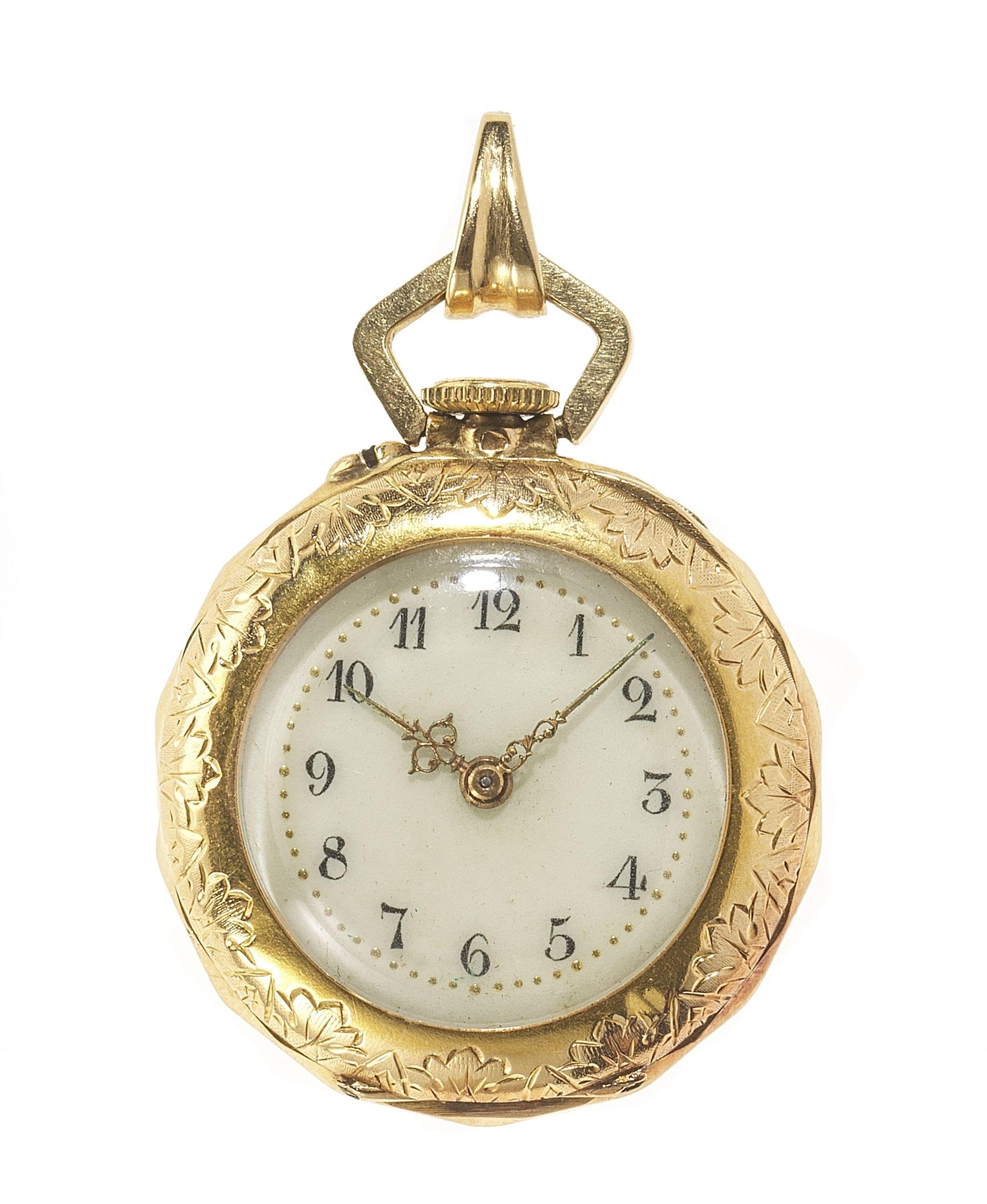 Cadran crème, aiguilles dorées, chiffres arabes noirs, travail français, or 585, D 28 mm, poids brut 20 g