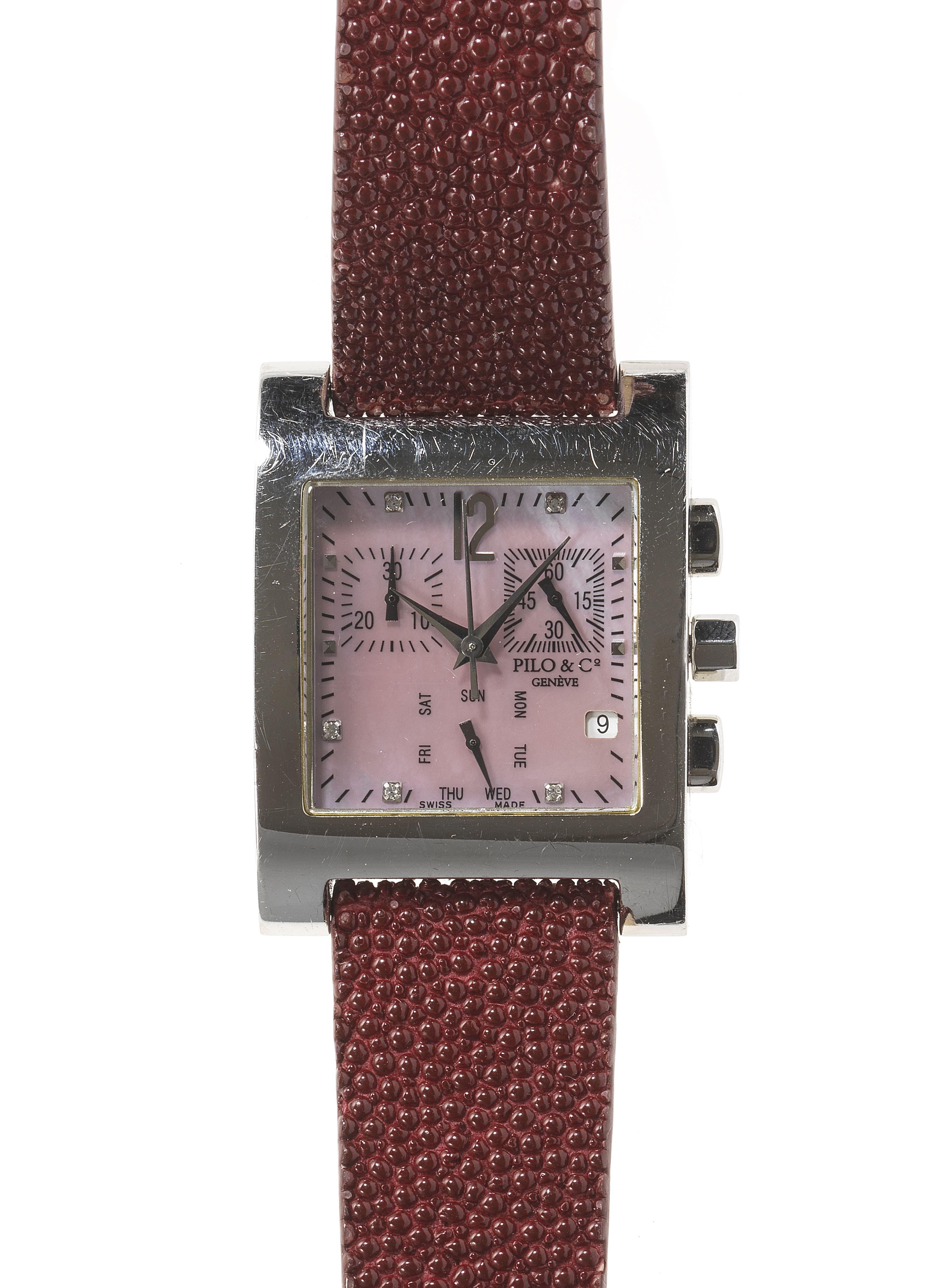 4314. Pilo & Co, montre chronographe rectangulaire à quartz