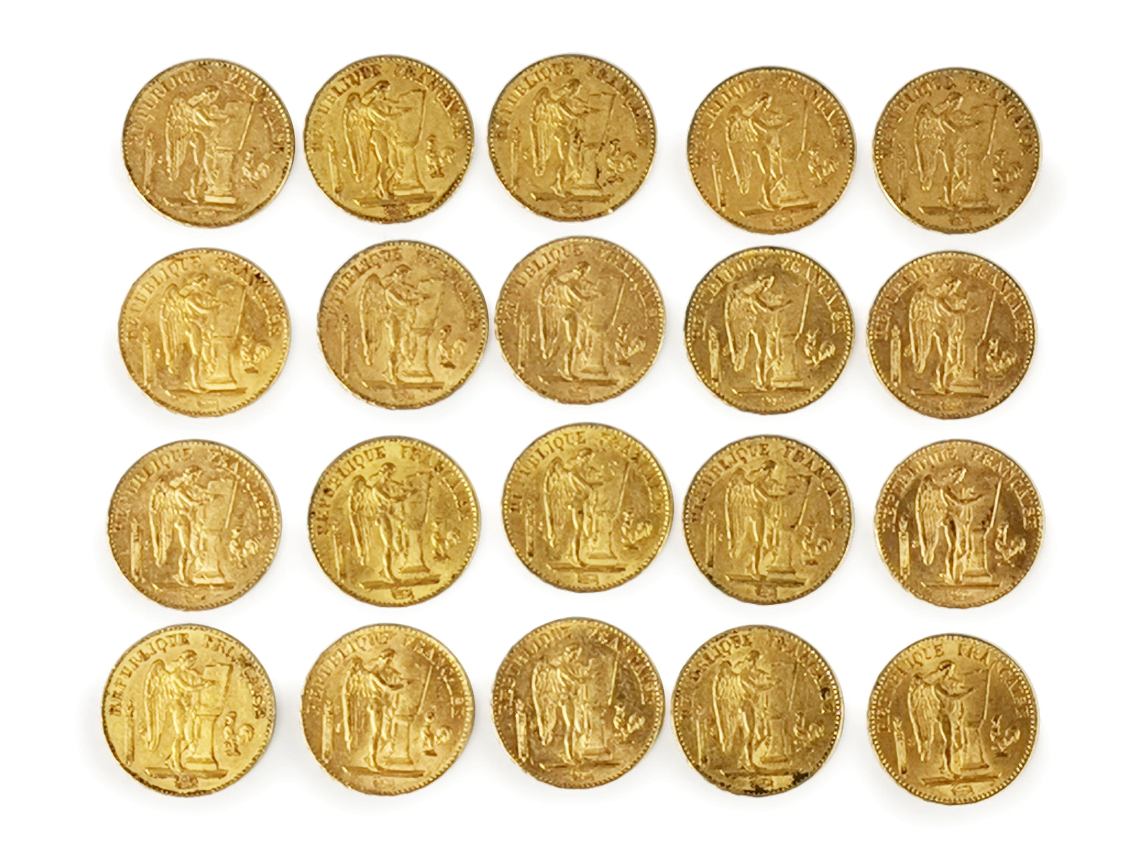 4386. Lot de vingt pièces de 20 francs Génie IIIè République, Dupré