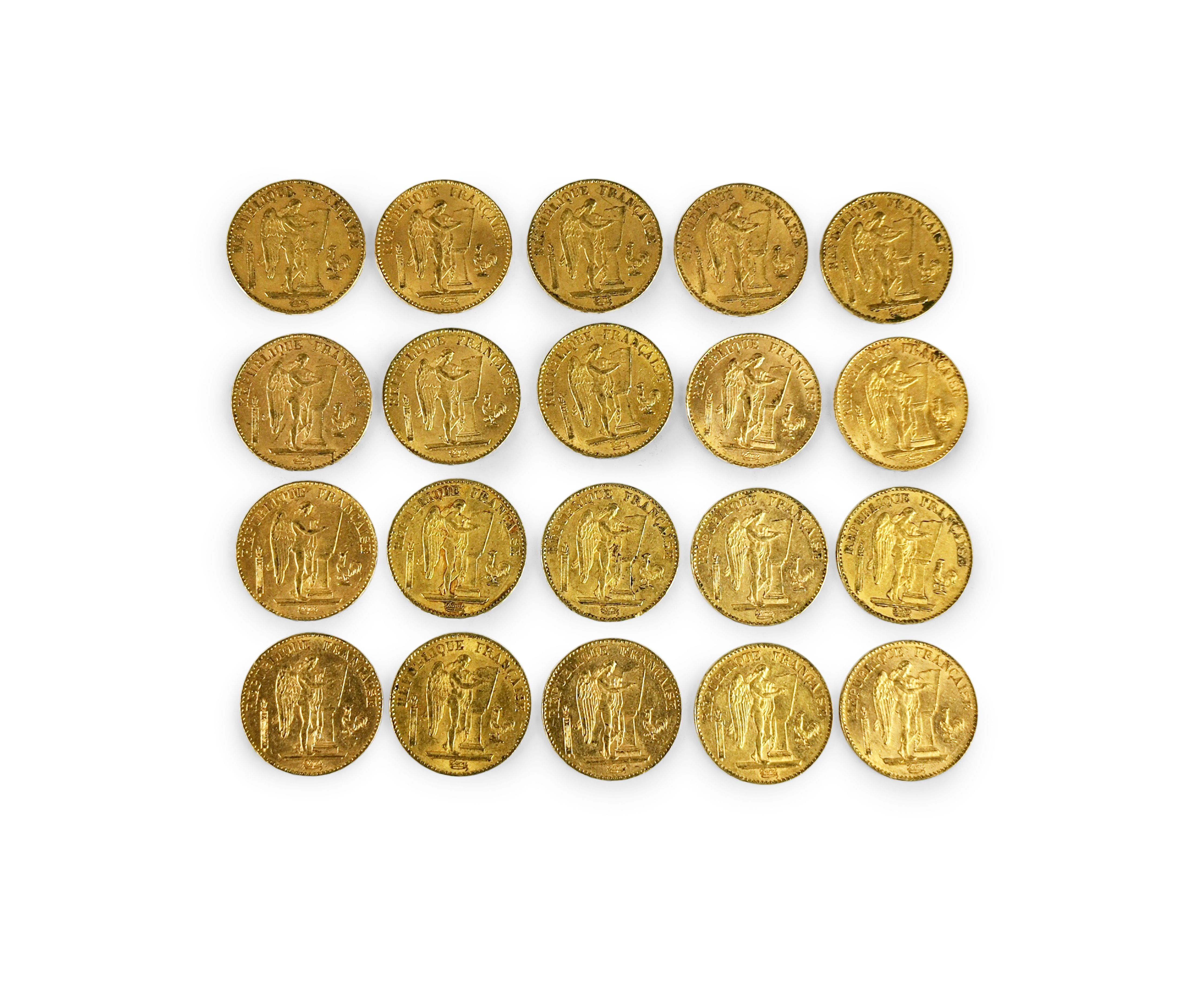 4387. Lot de vingt pièces de 20 francs Génie IIIè République, Dupré