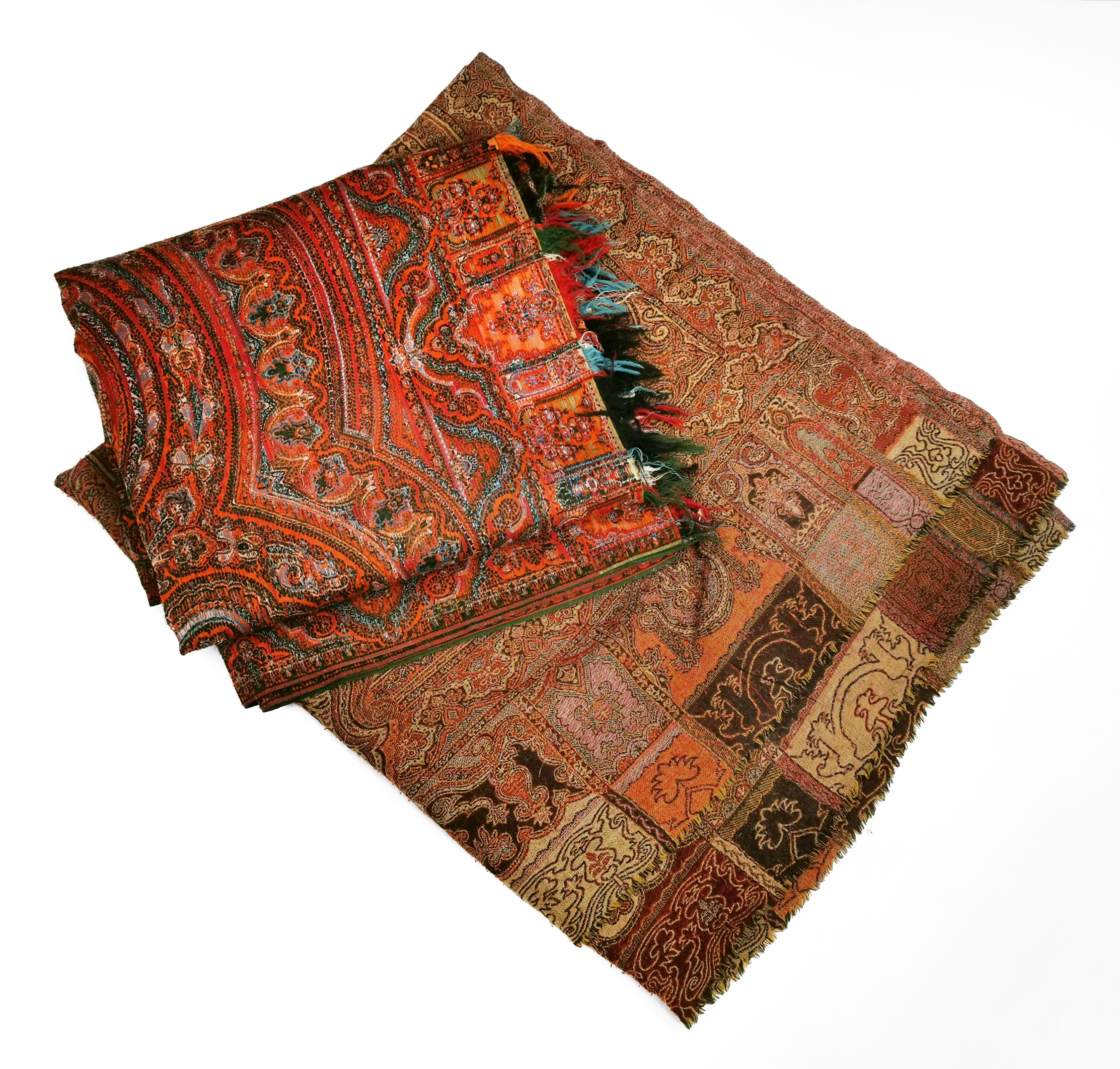 A motif cachemire sur fond rouge, 160x330 cm et 120x240 cm