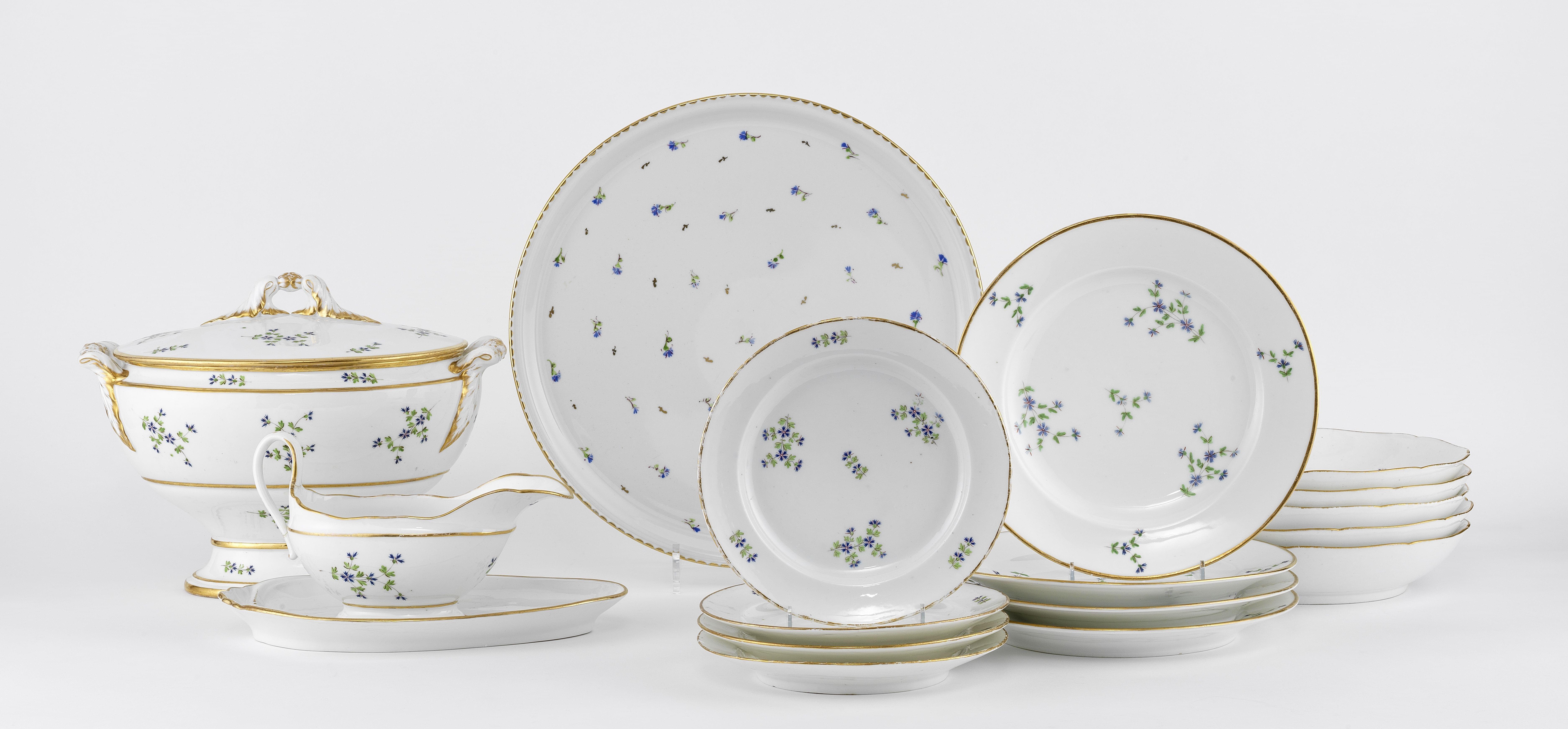 Vernis Martin à motifs de fleurs sur fond bordeaux, motif de scè...
