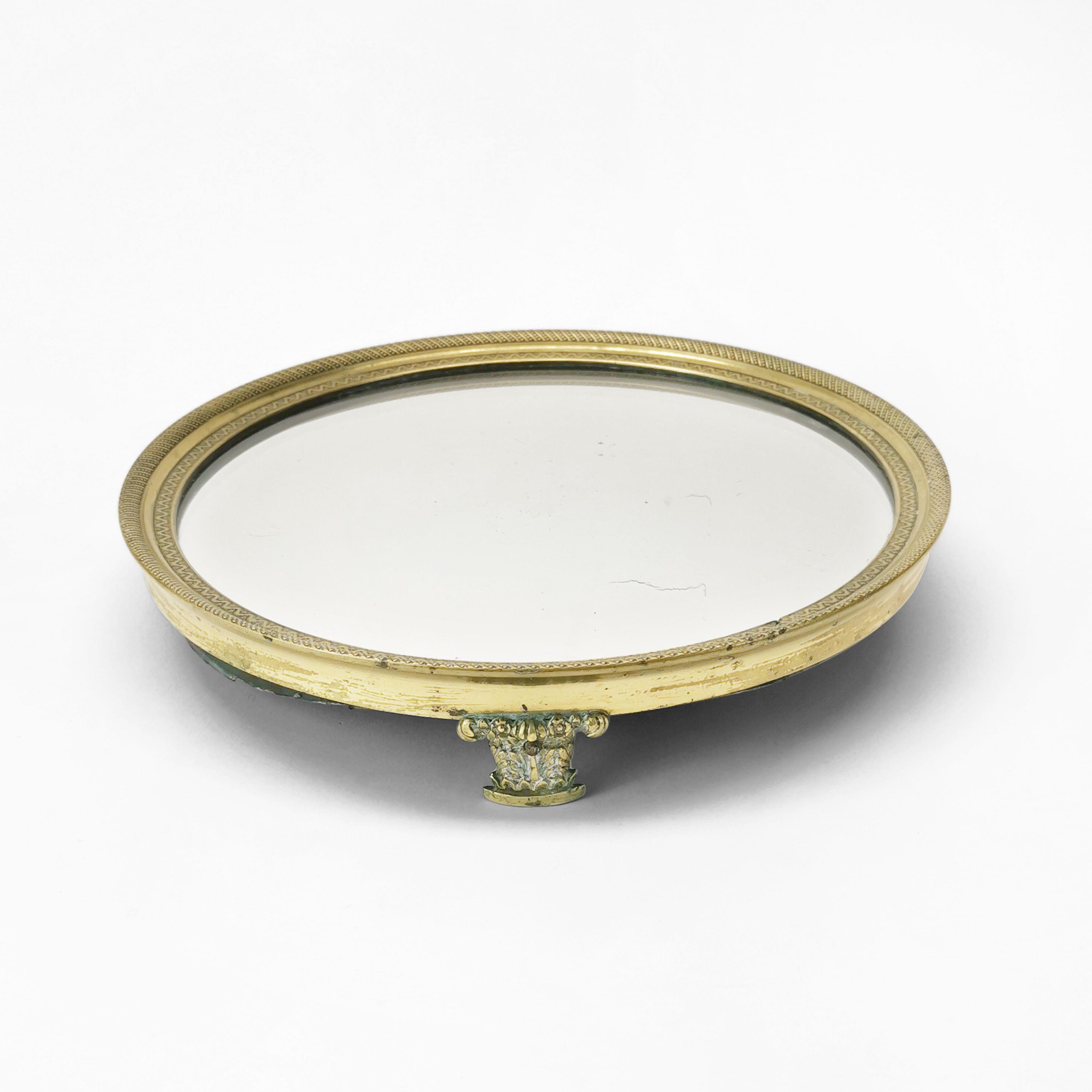 Trois tiroirs, placage de bois de rose, bronzes dorés, cuir noir...
