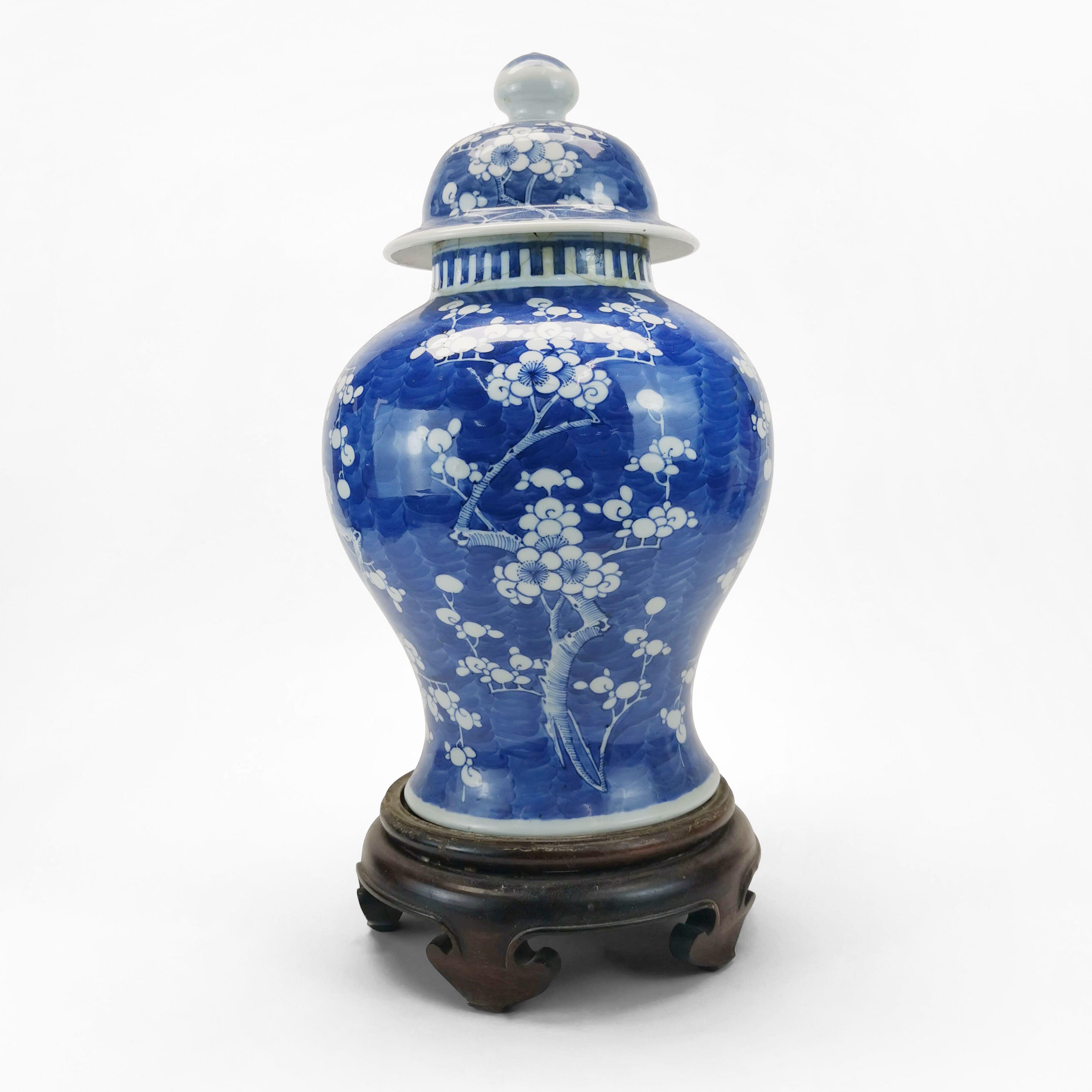 Porcelaine émaillée bleu blanc à motif de branches de prunus, H 45 cm