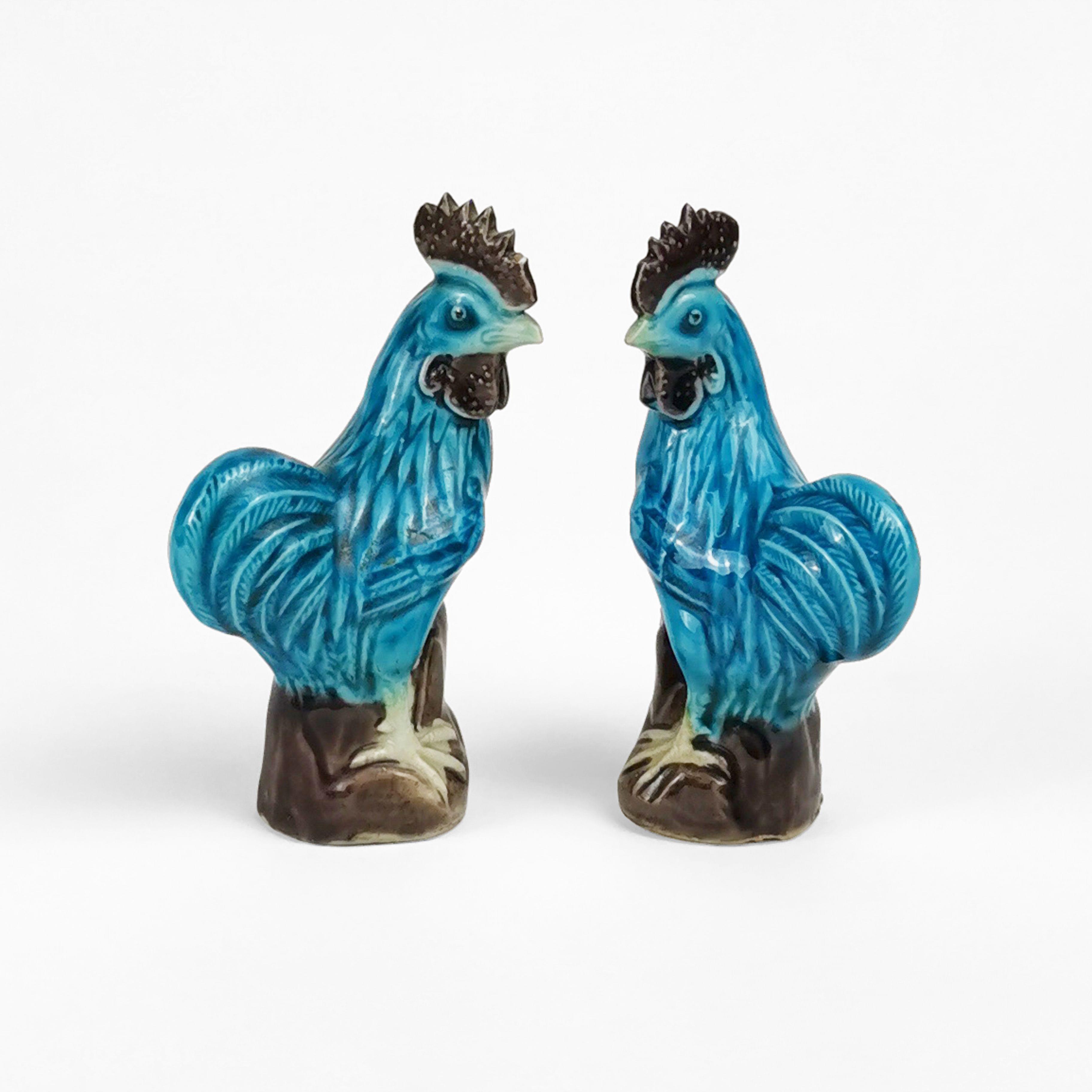 Porcelaine émaillée monochrome bleu à motifs de vases archaïques...
