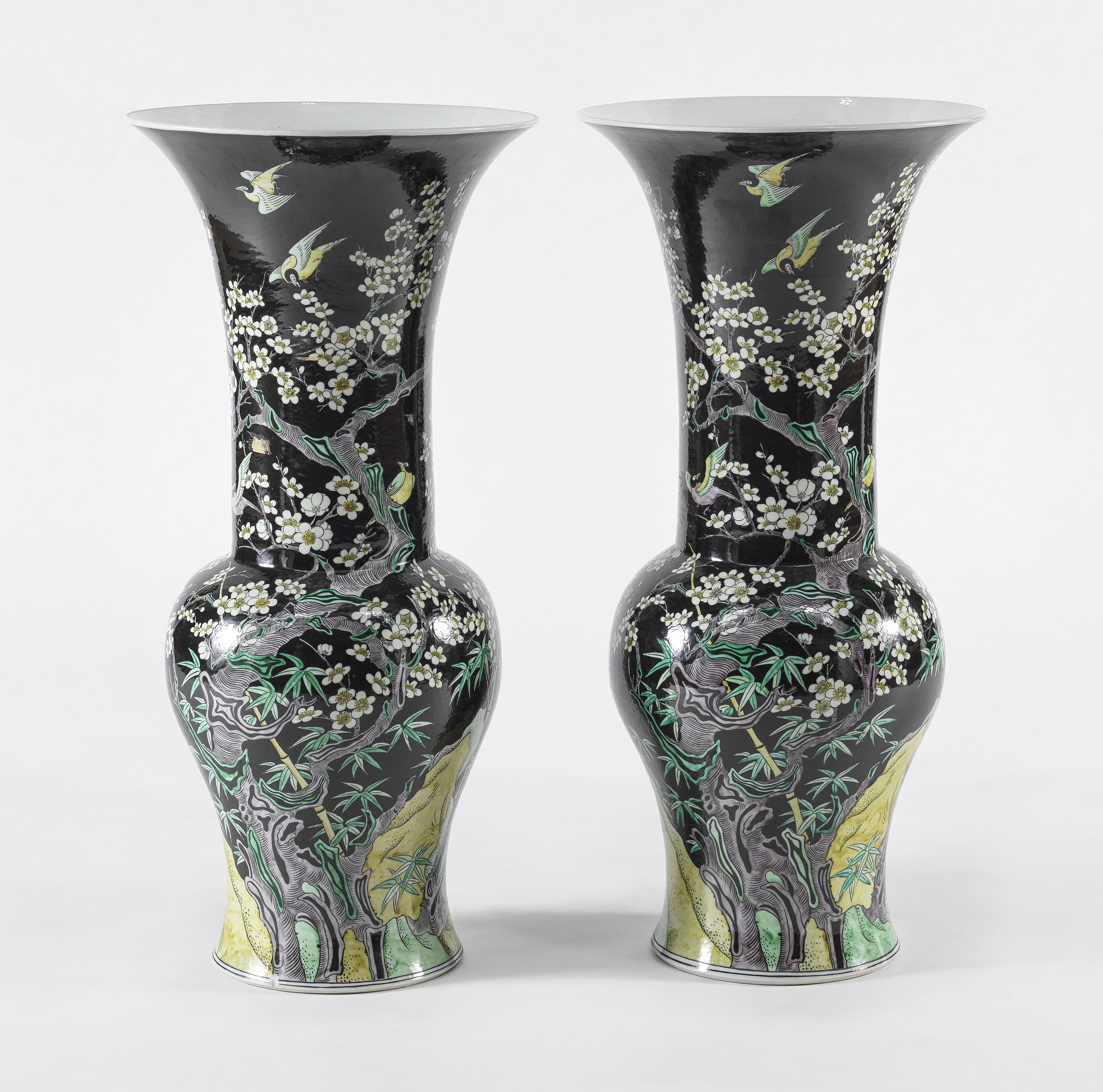 4679. Paire d'importants vases, famille noire, Chine, XXe s