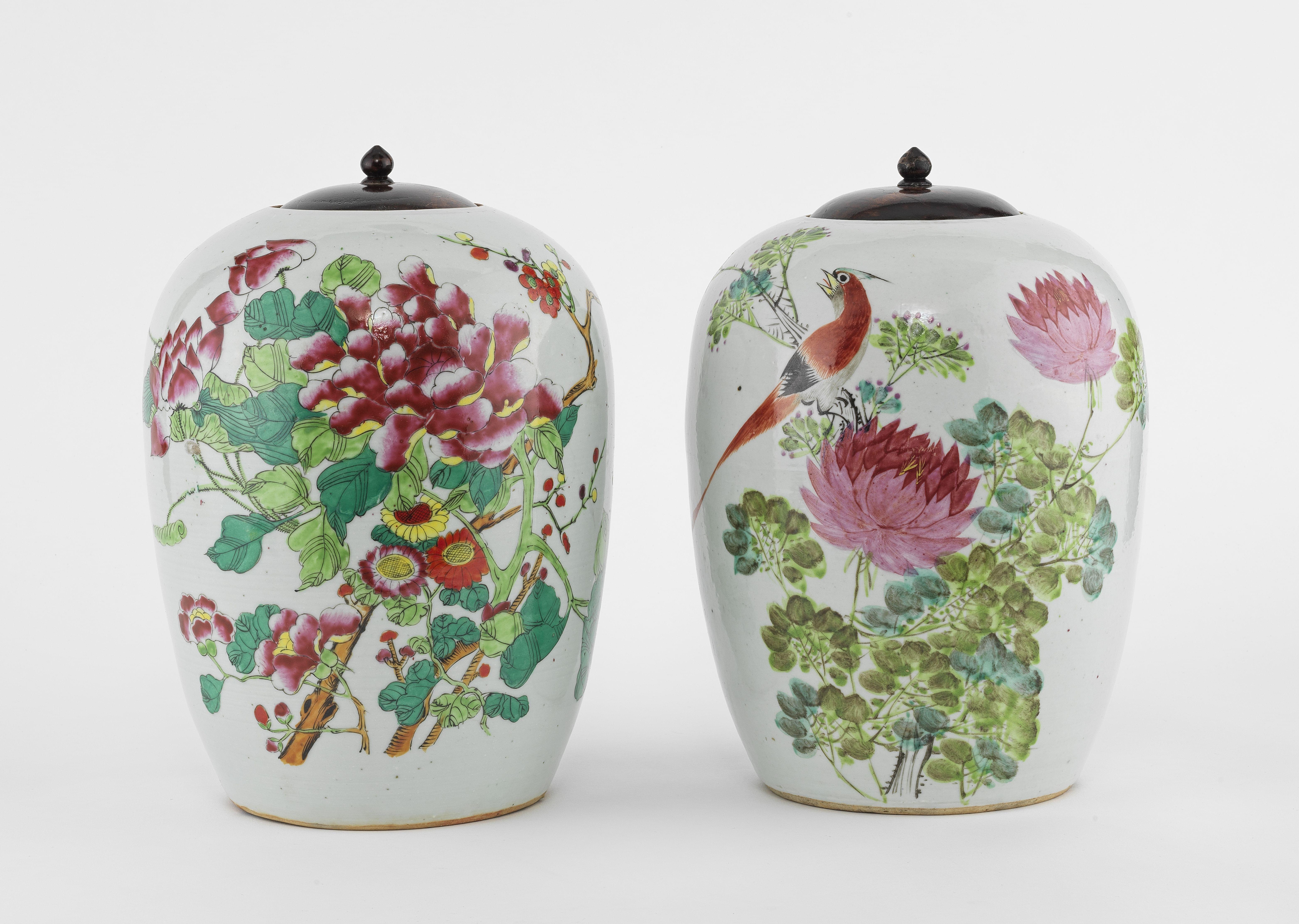 Porcelaine émaillée polychrome à décor de fleurs, H 27 cm