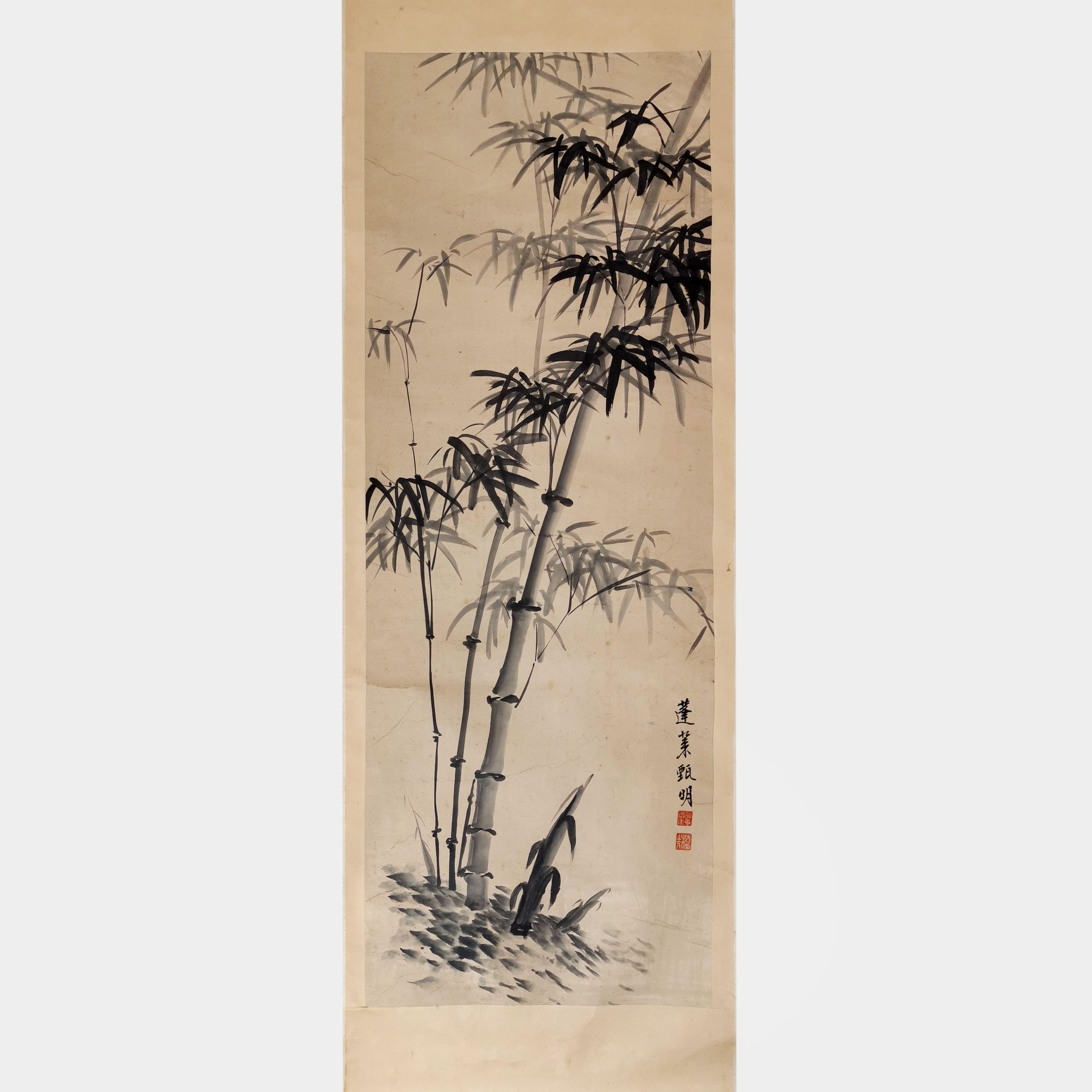 Bambou, encre sur papier, montée en rouleau, 124x52 cm