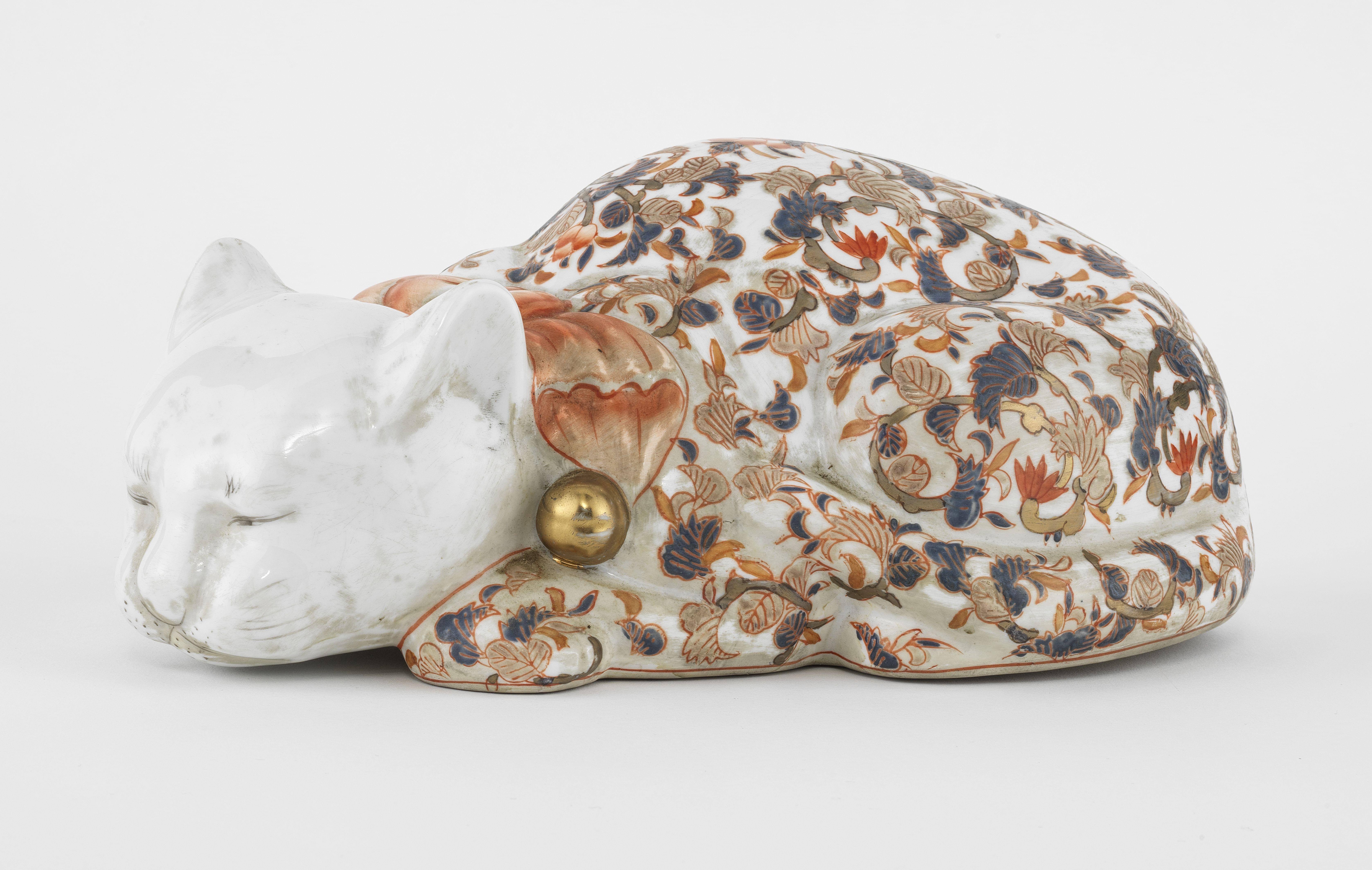 3064. Quatre cannes à pommeau de porcelaine décor style XVIIIe, Imari...
