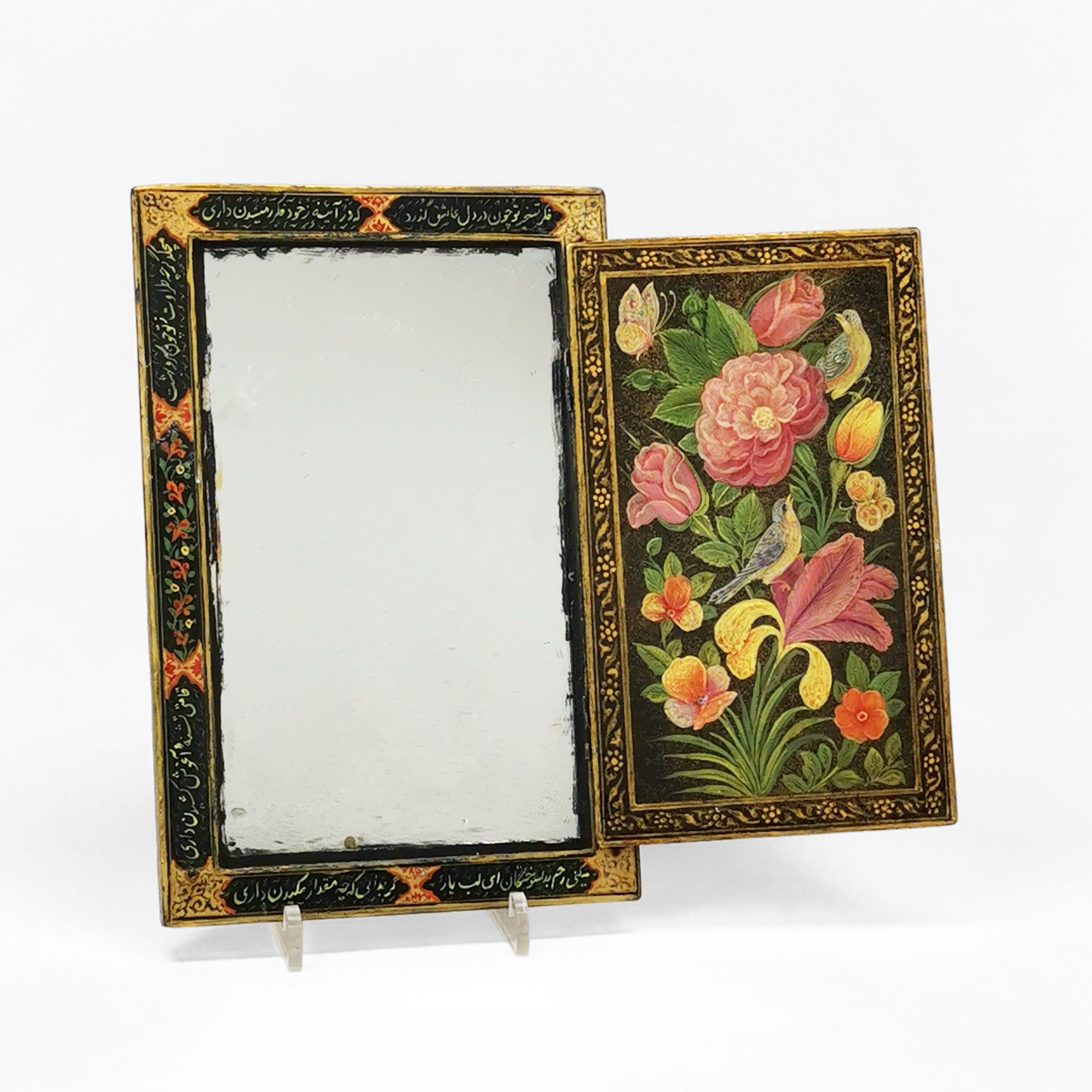 Bois sculpté et peint, à décor de fleurs sur fond rouge, H 37 cm