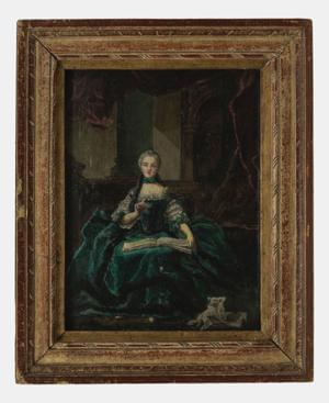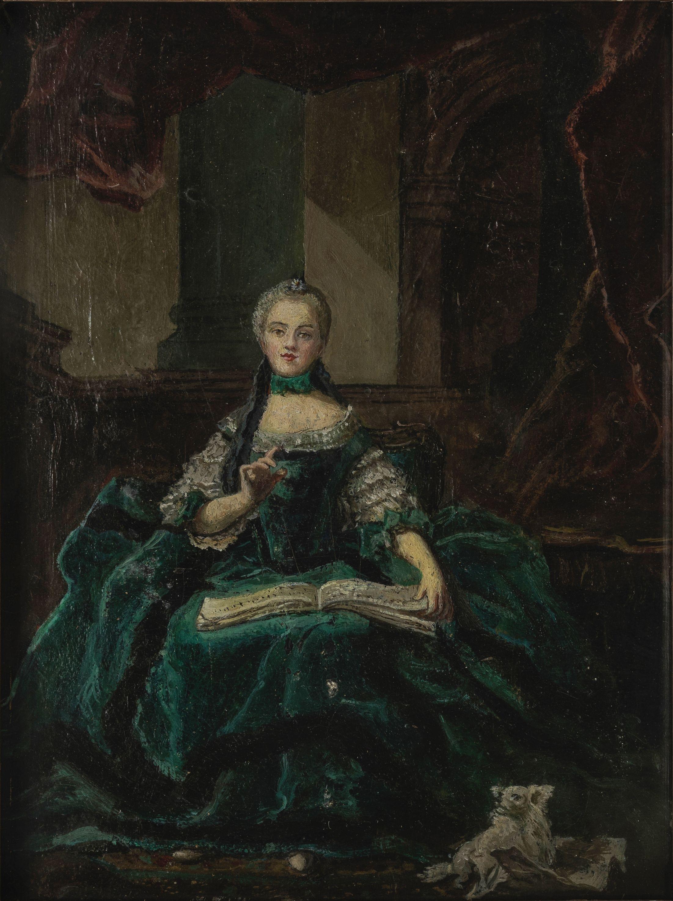 Elégante à la lecture, huile sur toile marouflée sur panneau, 24x18 cm