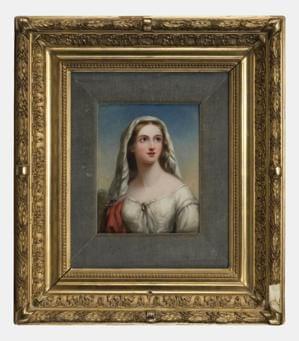 Jeune femme aux yeux bleus, huile sur carton, 23x19 cm