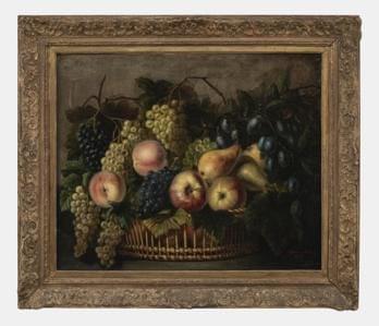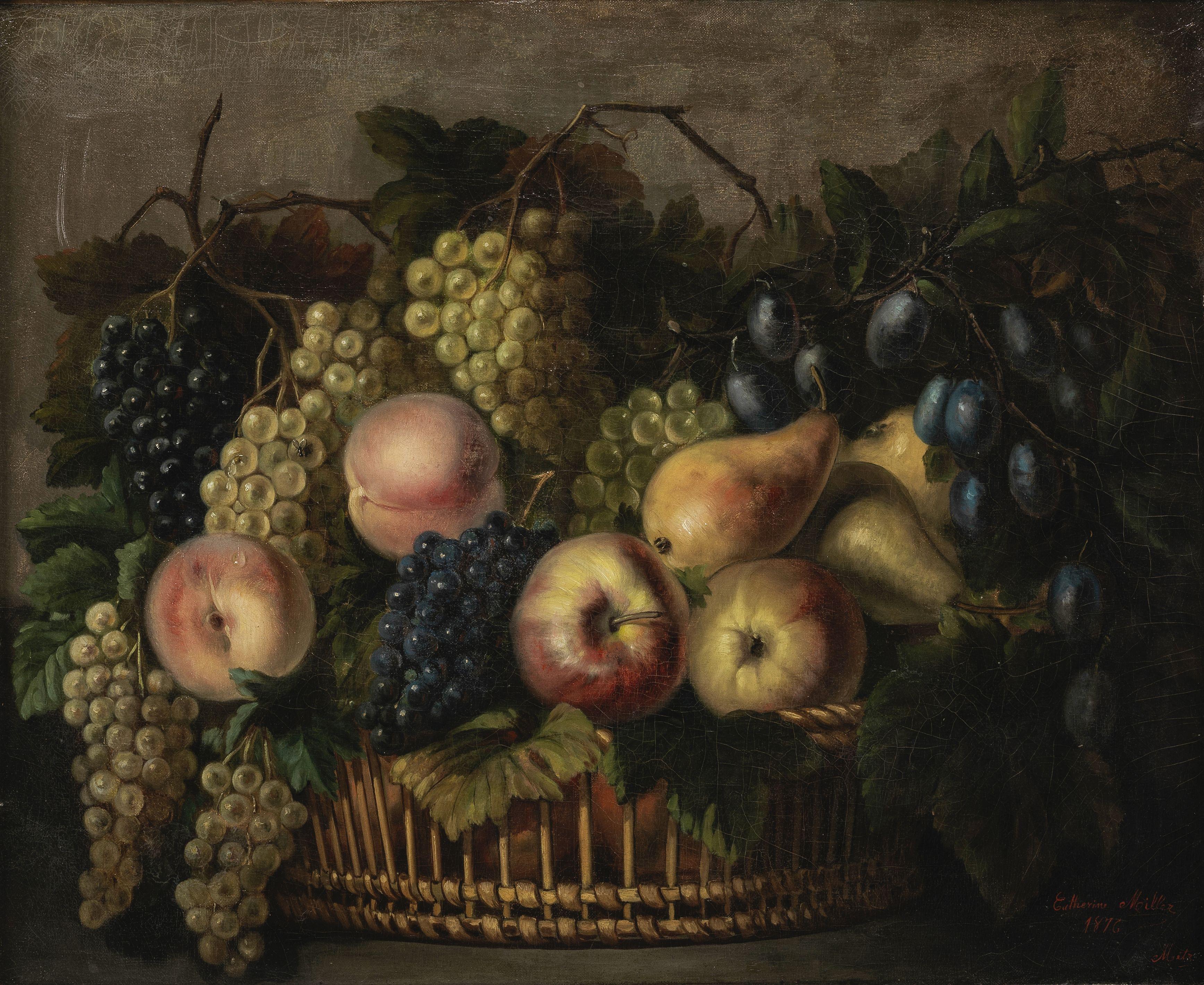 Nature morte au panier de fruits, huile sur toile, signée et datée, 1876, 58x75 cm