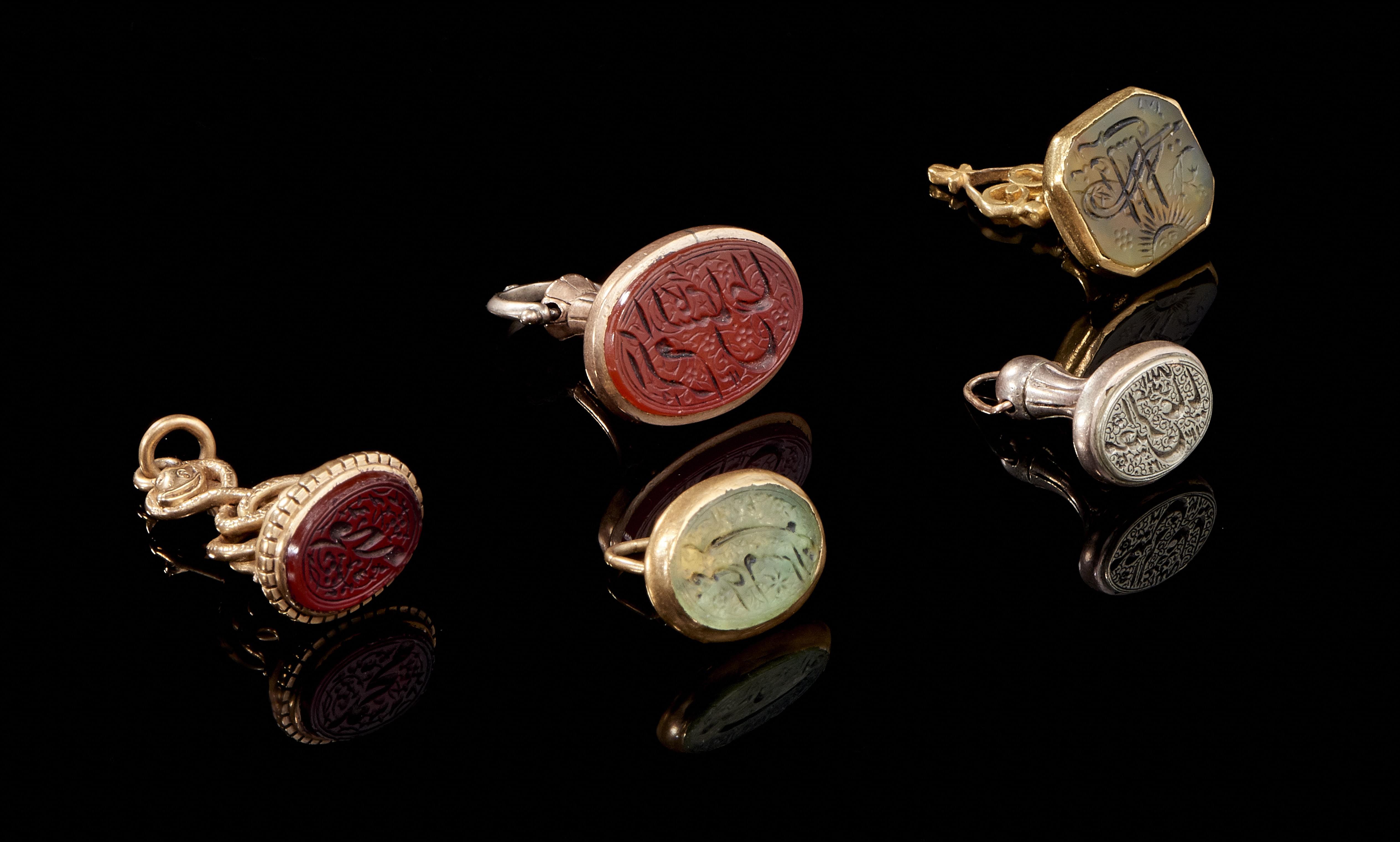 108. 5 sceaux montés en or, Iran, époque Qajar (1786–1925)
