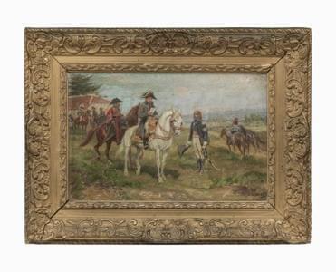 Napoléon sur le champ de bataille, huile sur toile, signature illisible, 27x32 cm