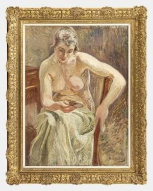 Lagernd, huile sur carton, signée, 18,5x35,5 cm