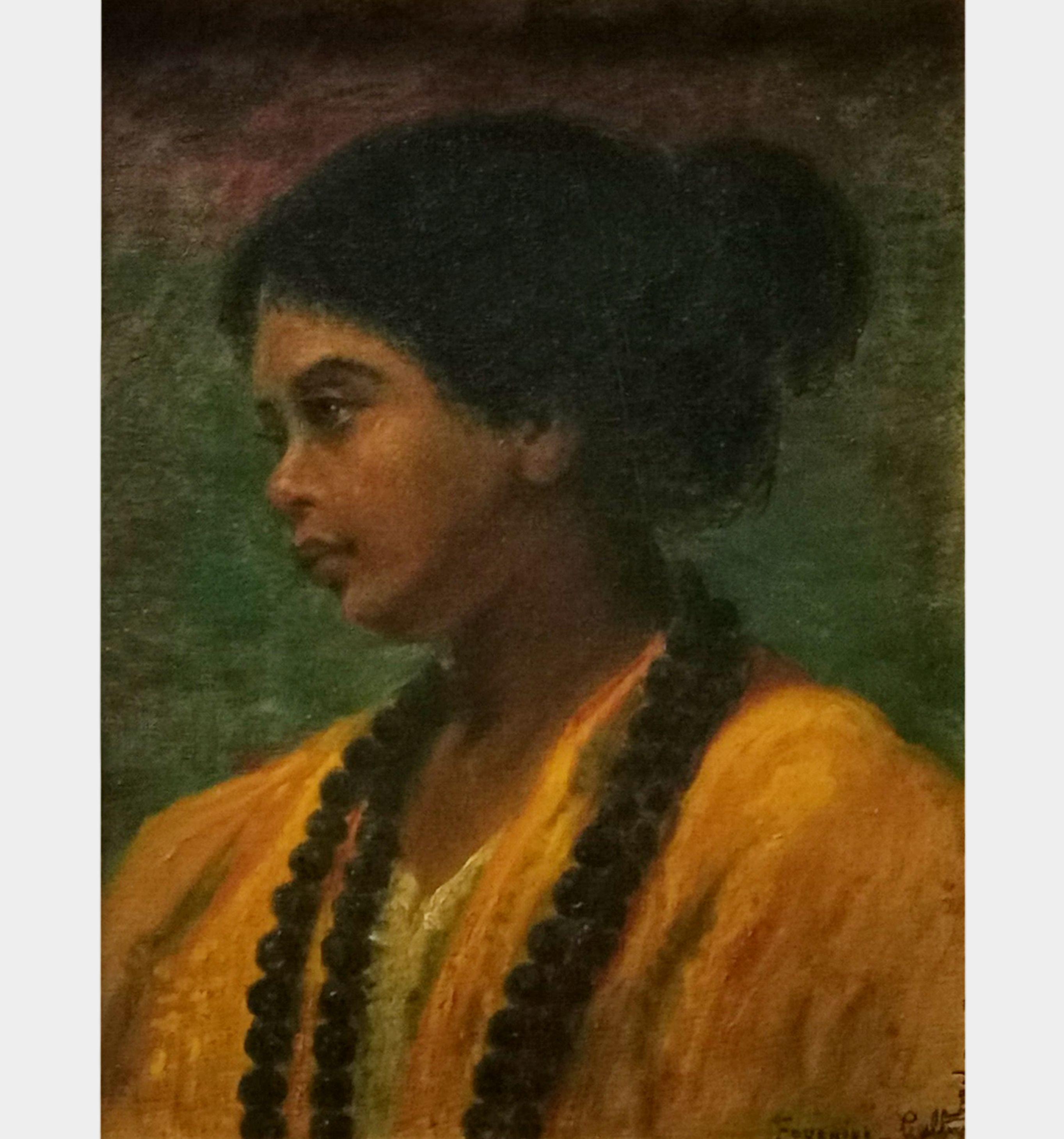Portrait d'une femme indienne, huile sur pavatex, signée, 32x24 cm