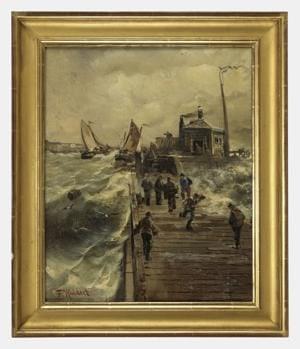 Mer en tempête, huile sur toile, signée F.Waldert, 54x44 cm