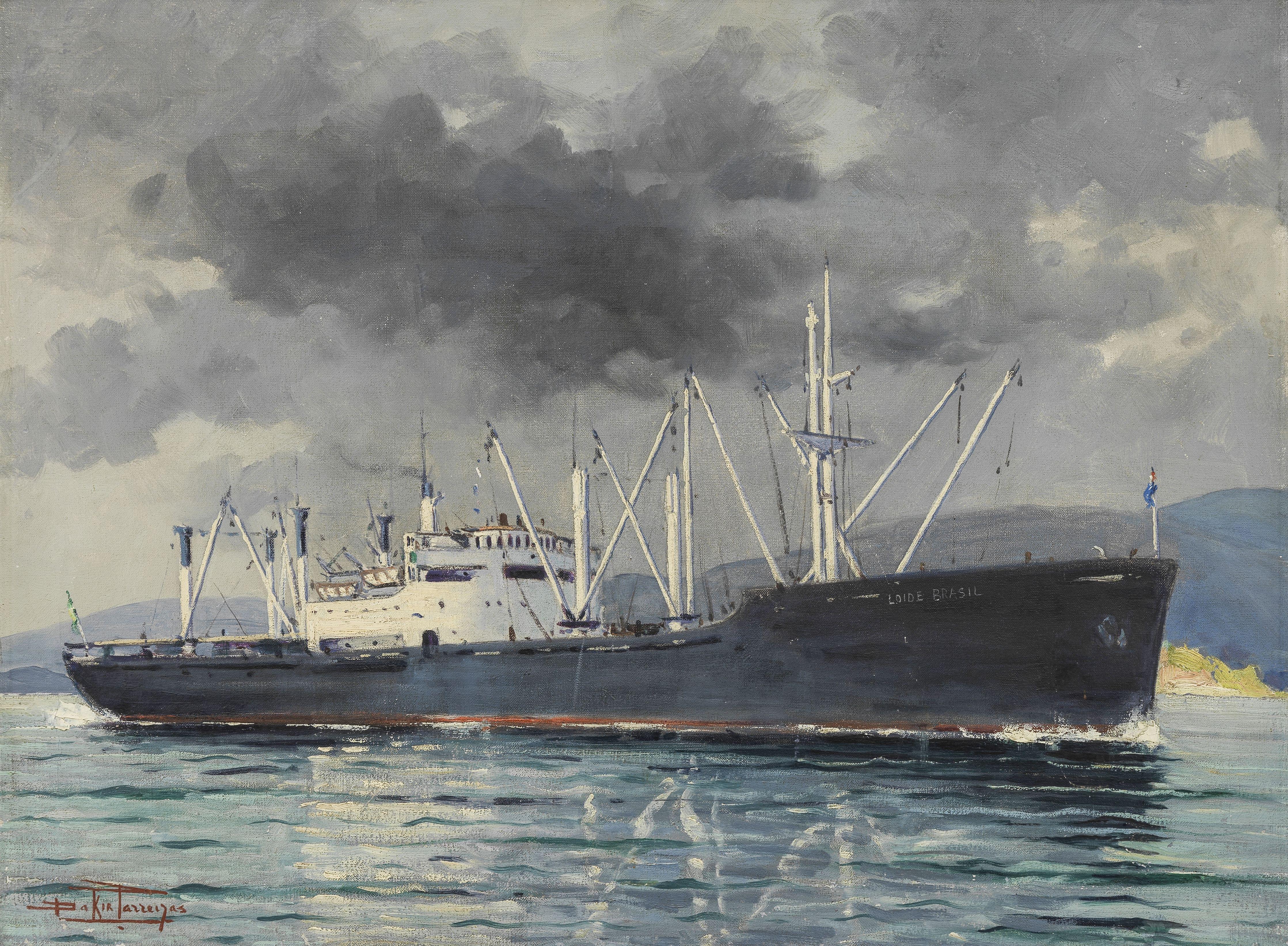 Navire le Loide Brasil, huile sur toile, 58x78 cm