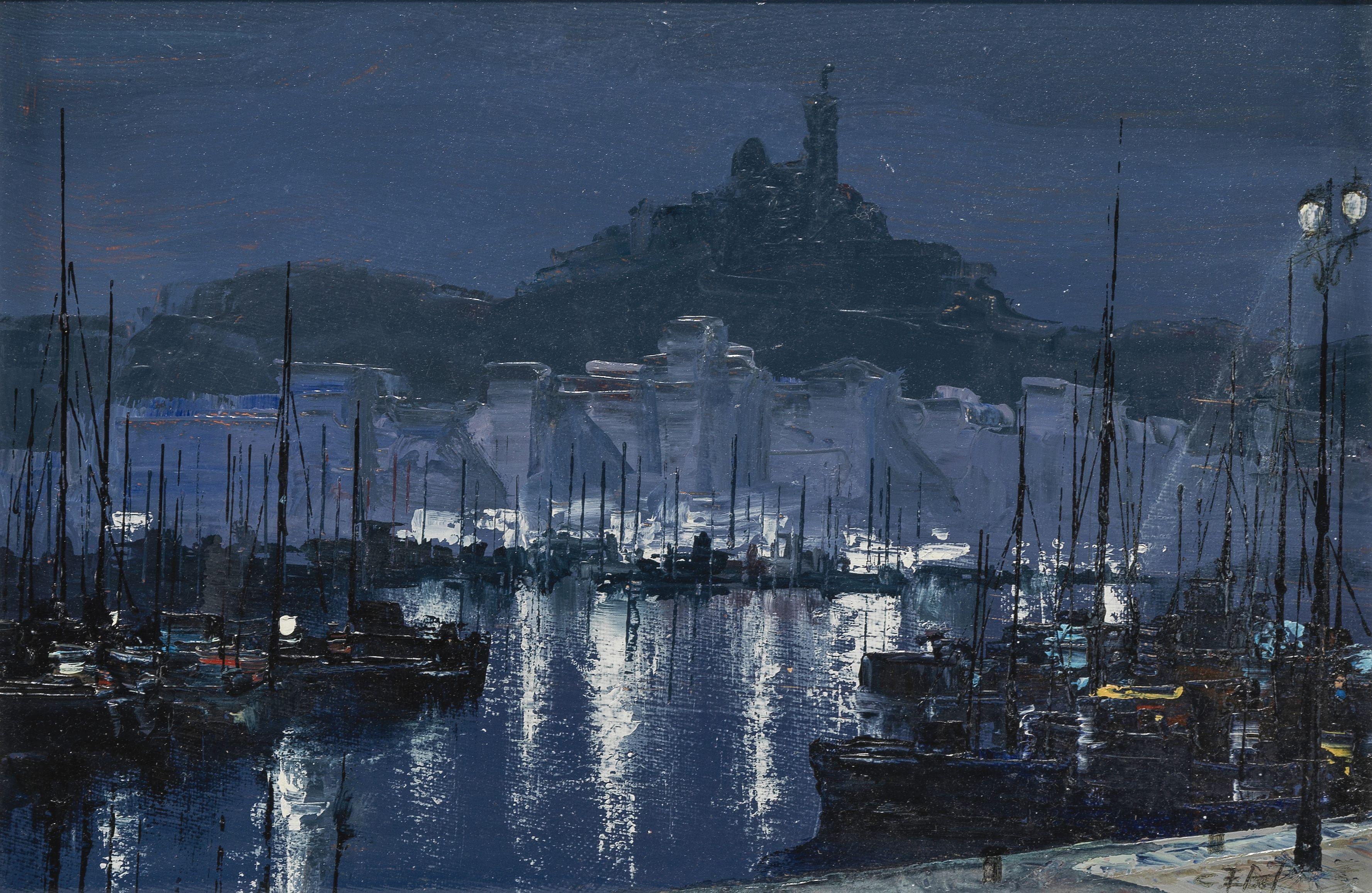 Notre Dame de La Garde, huile sur toile, signature illisible, 24x35 cm