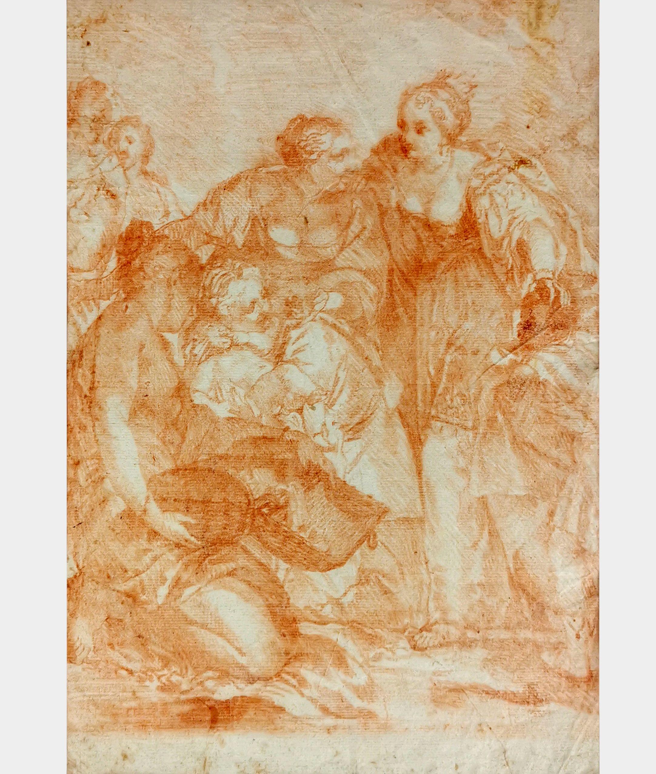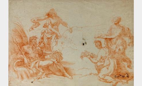 Moïse sauvé des eaux et scène mythologique avec un dieu fleuve, deux contre-épreuves sanguines, 20x29 et 19x28 cm
