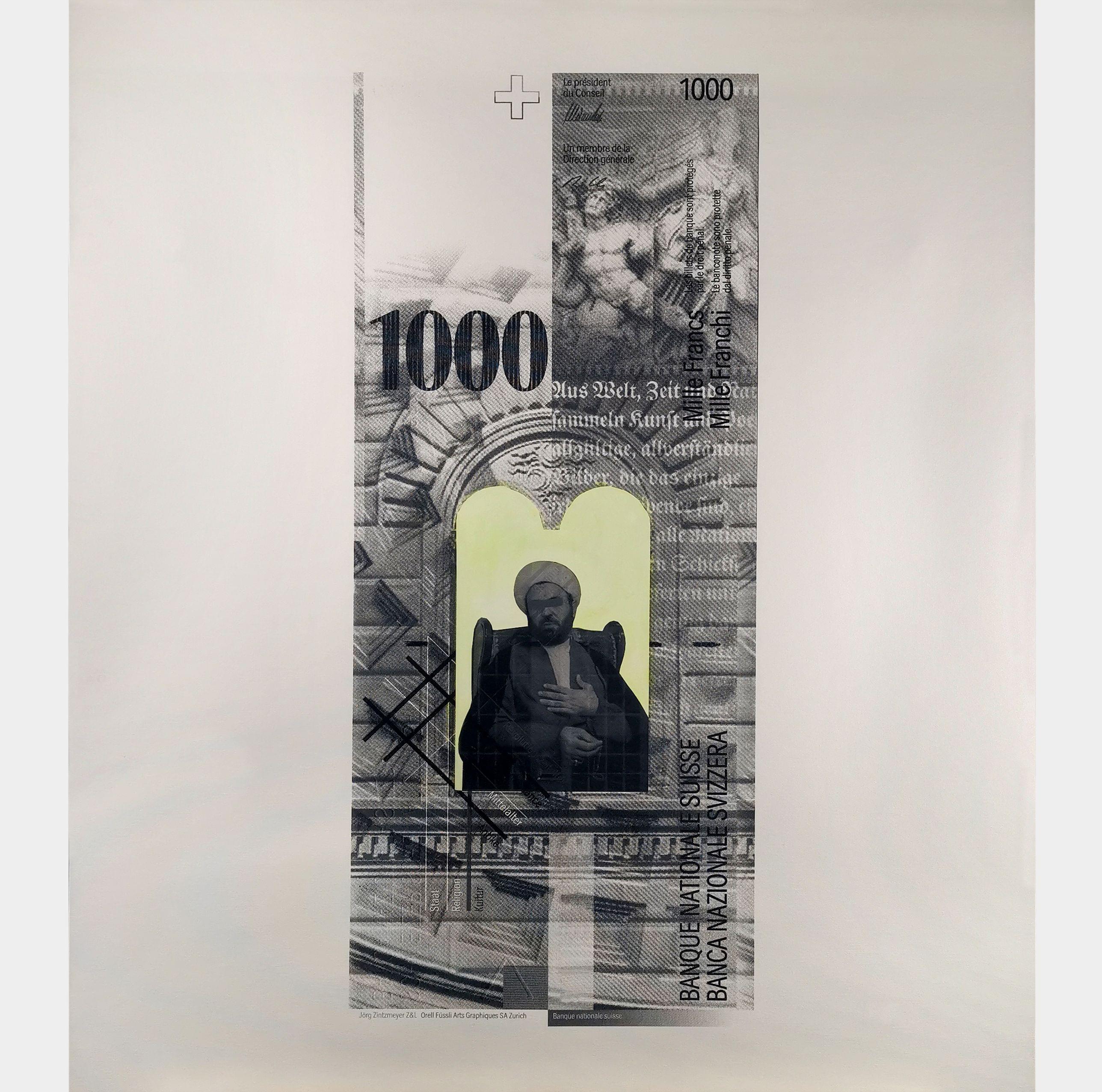 1000 CHF à l'ayatollah, impression sur toile, 115x98 cm. Provenance: collection privée genevoise