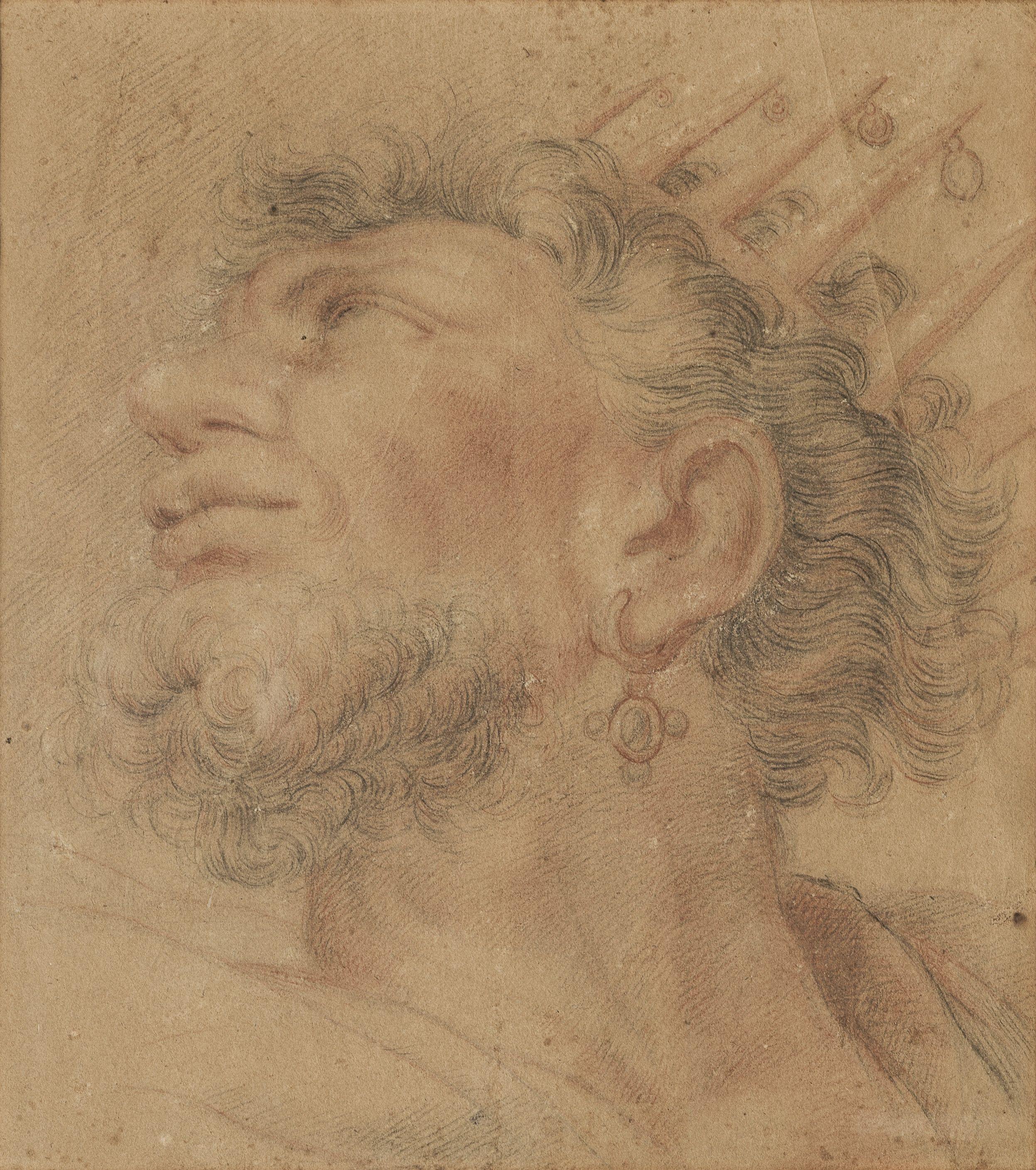 Figure d'un homme barbu, sanguine et fusain sur papier, 30x26 cm