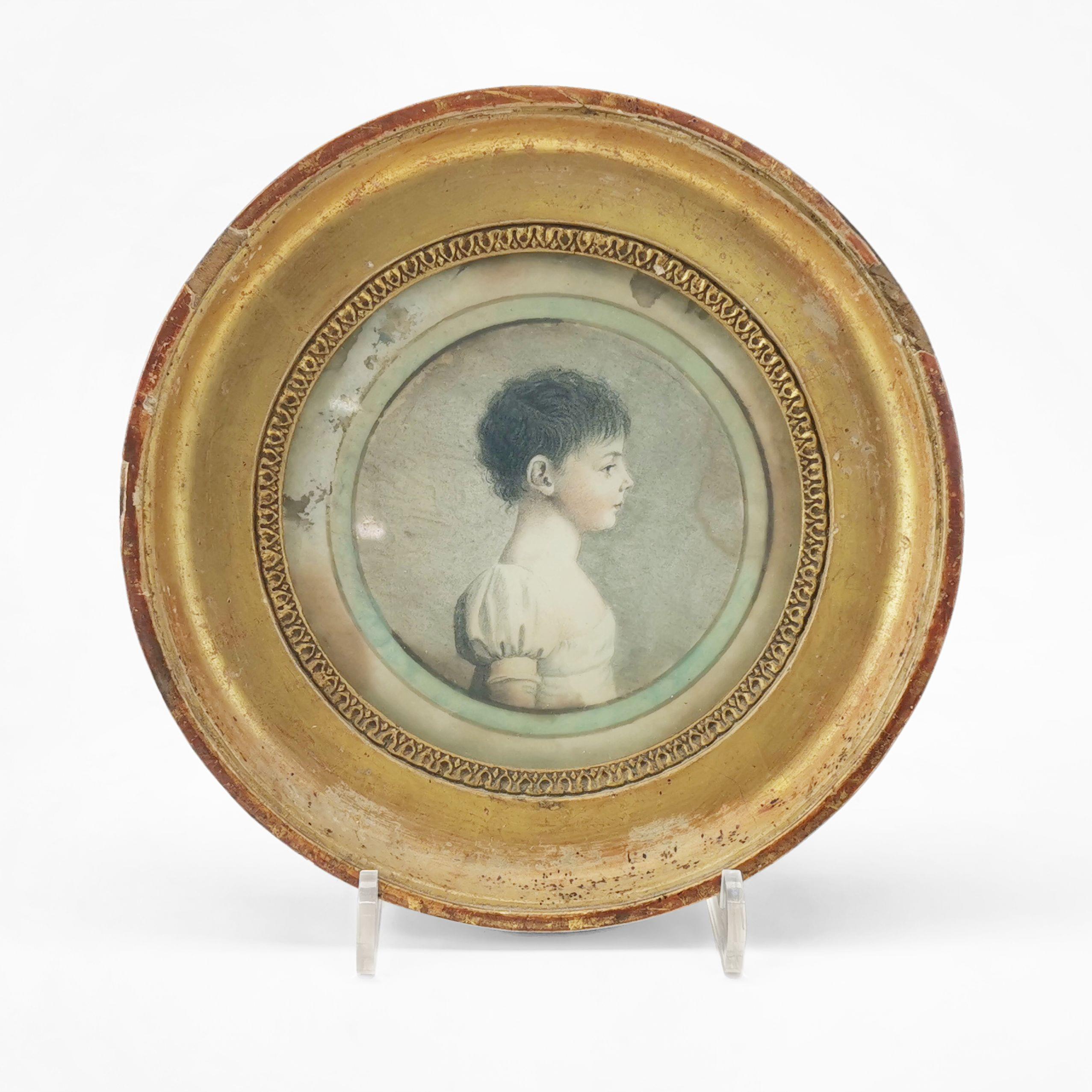 Portrait de jeune fille de profil, mine de plomb et sanguine, D 10 cm
