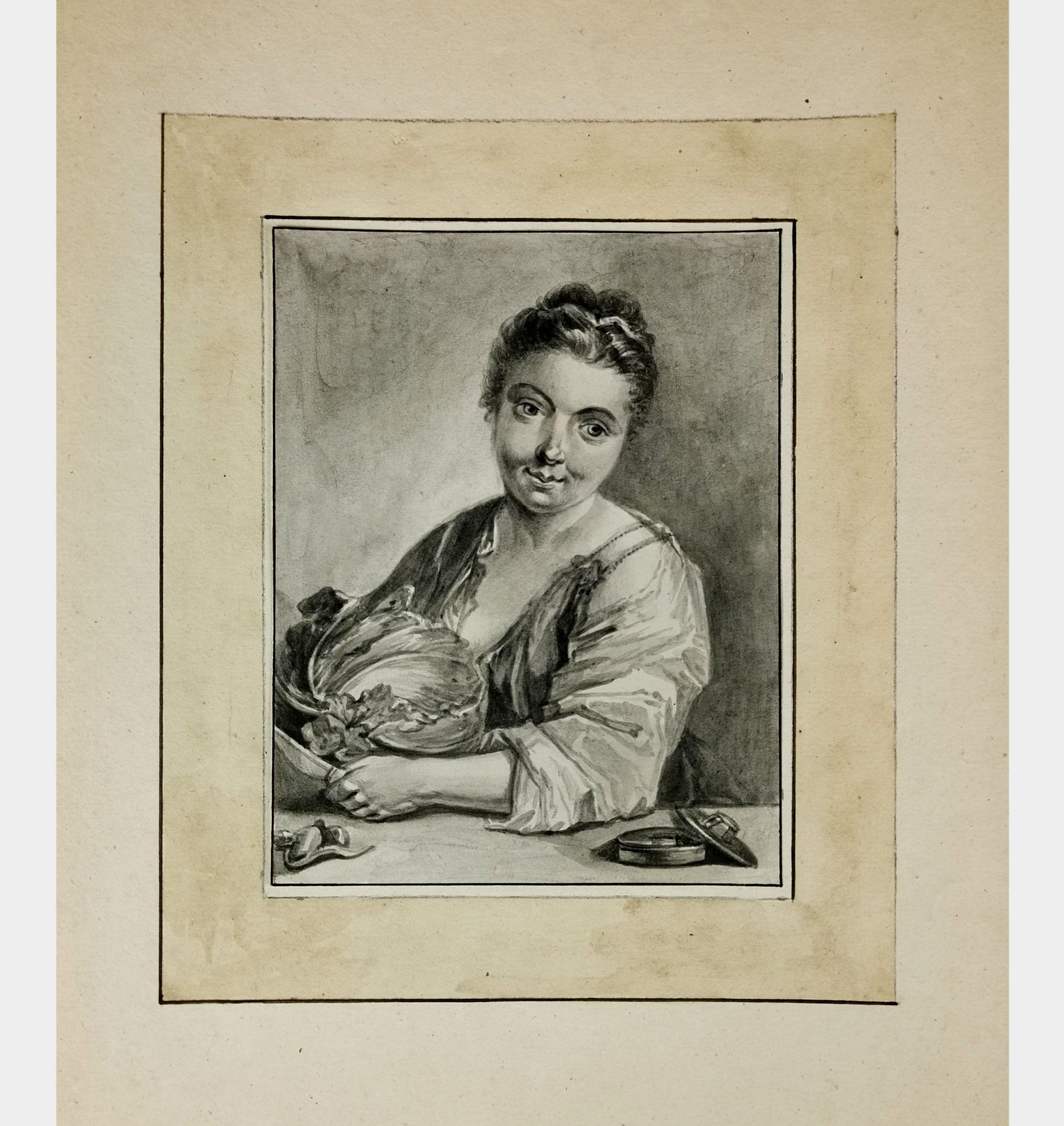 La coupeuse de chou, copie de la gravure du tableau conservé au Musée des Beaux-arts de Reims, lavis sur papier, 18x14 cm