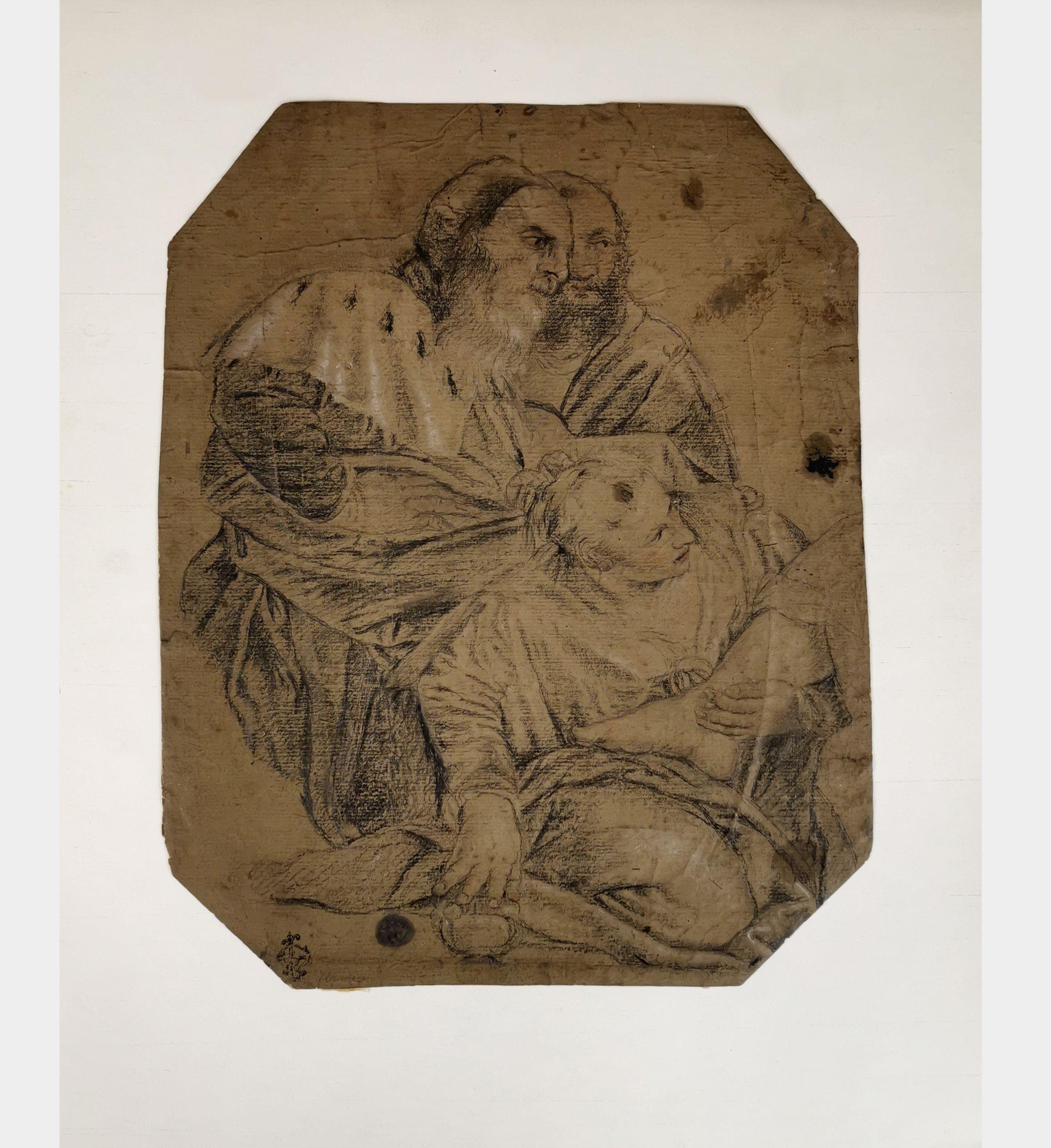 Copie d'un détail du Repas chez Simon, conservé à Turin, fusain et craie blanche sur papier, 31x24 cm. Cachet du collectionneur et marchand d'art Luigi Grassi (mort vers 1937), Lugt L.1171b