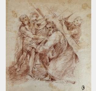 Christ en Croix et station du Chemin de Croix, deux sanguines sur papier, 24x23 et 29 x20. Cachets de collection apocryphes de la bibliothèque royale de Windsor (Edward VII, roi d'Angleterre de 1901 à 1910). Lugt L.901 et uniquement sur l'un de la collection Prince N. Esterhazy (1765-1833). Lugt L. 1965
